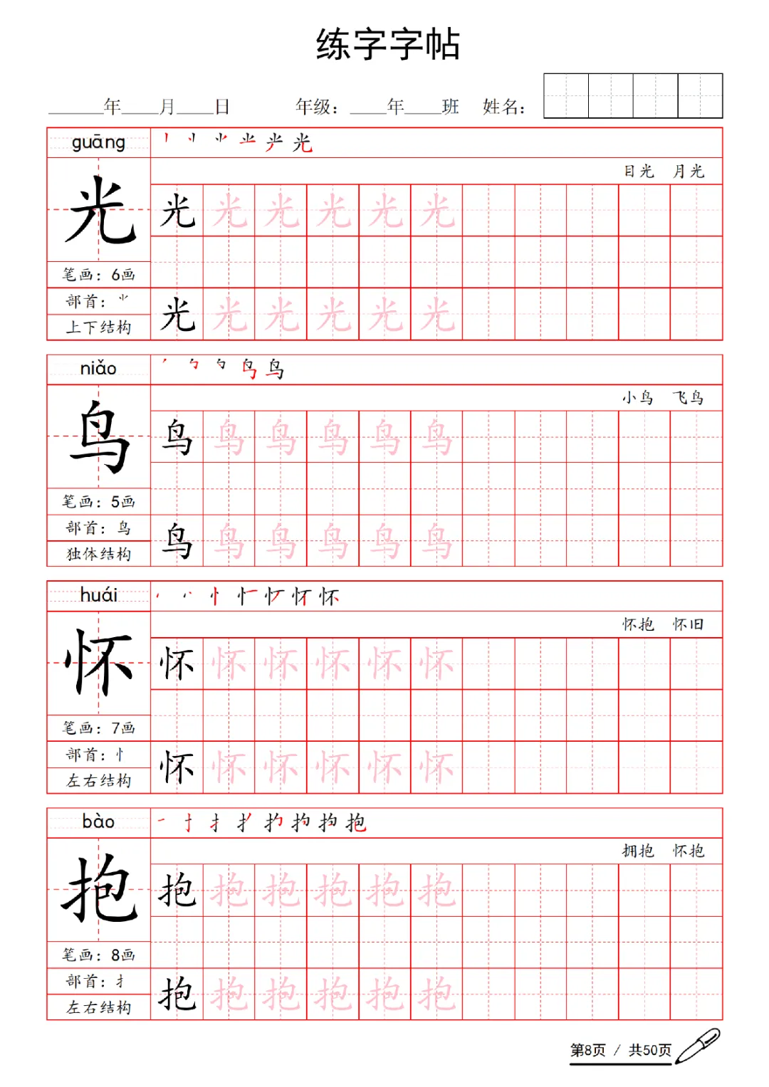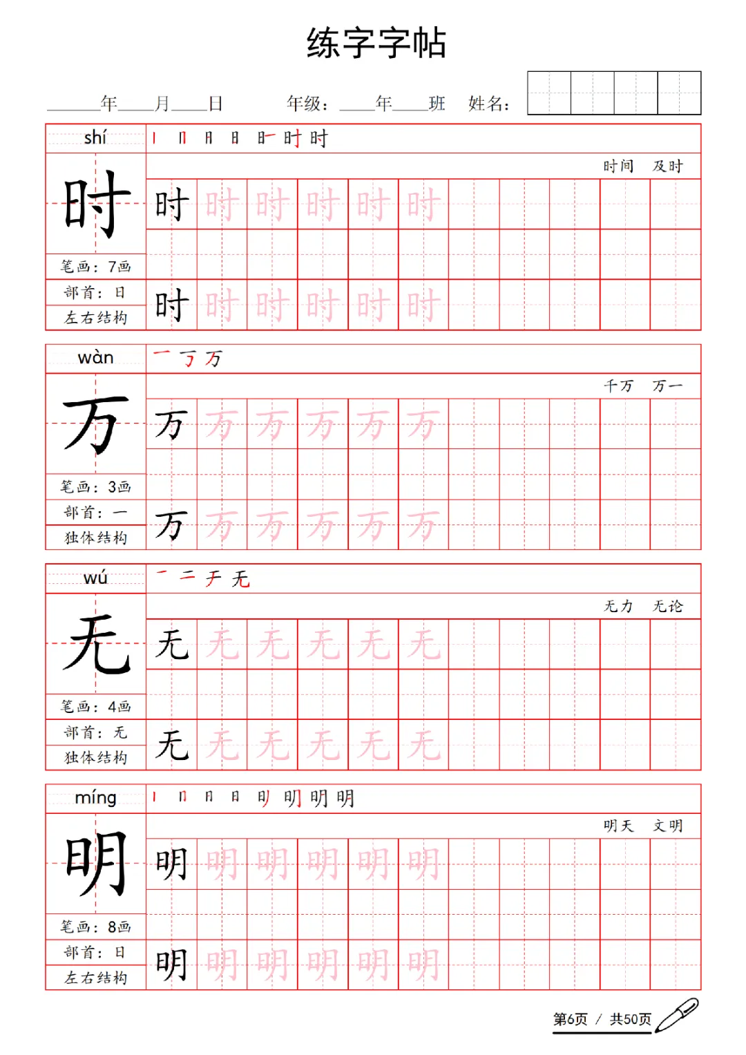 2026年一年级下册语文练字字帖|电子版可打印