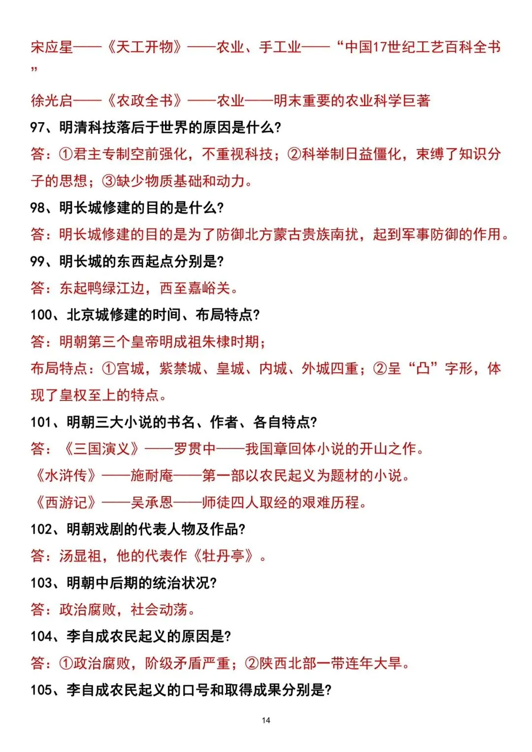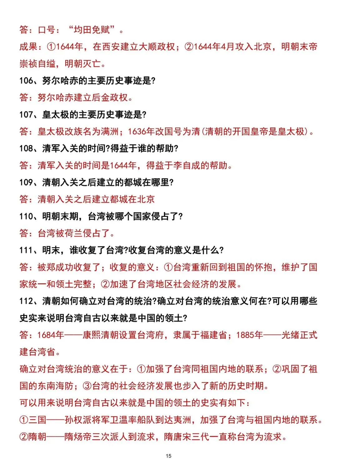 七年级下册历史寒假必背139个问题(电子版可打印)