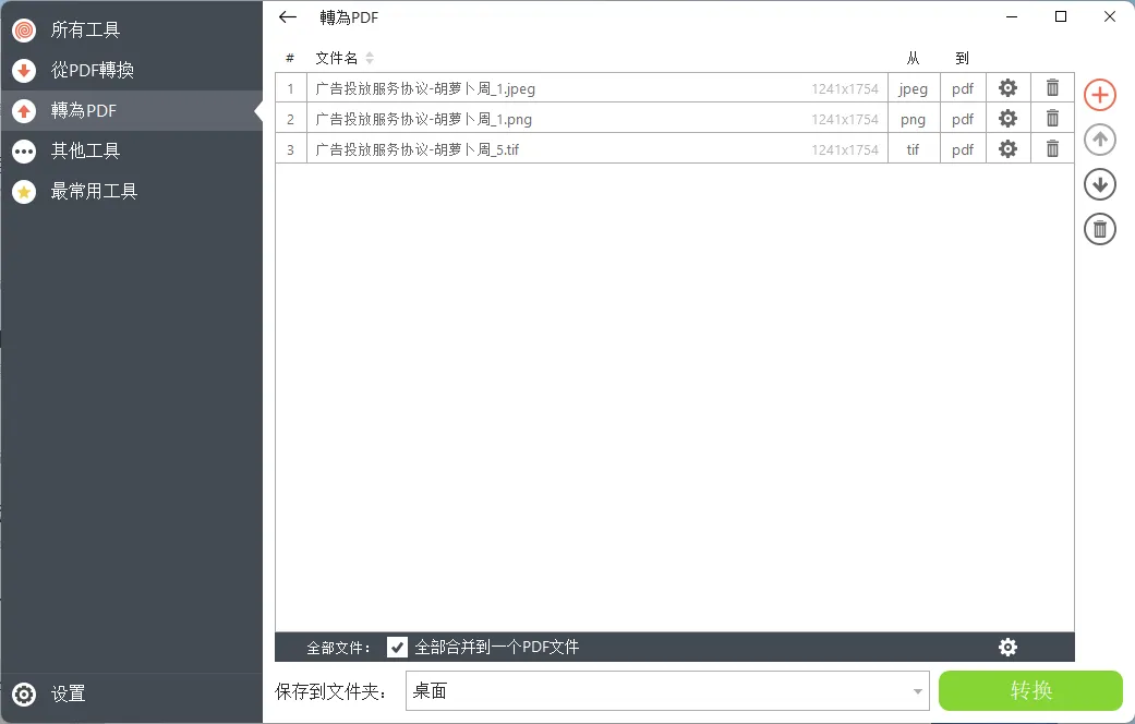 如果所有文件单独转换,那么不勾选底部的选项,否则默认全部合并到一个 PDF 文件。