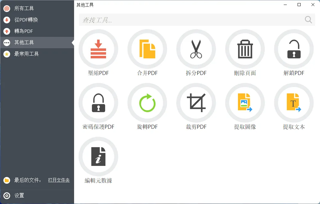 除了转换功能之外,剩下的其他工具还有压缩、拆分、旋转、裁剪、提取等十一个工具。