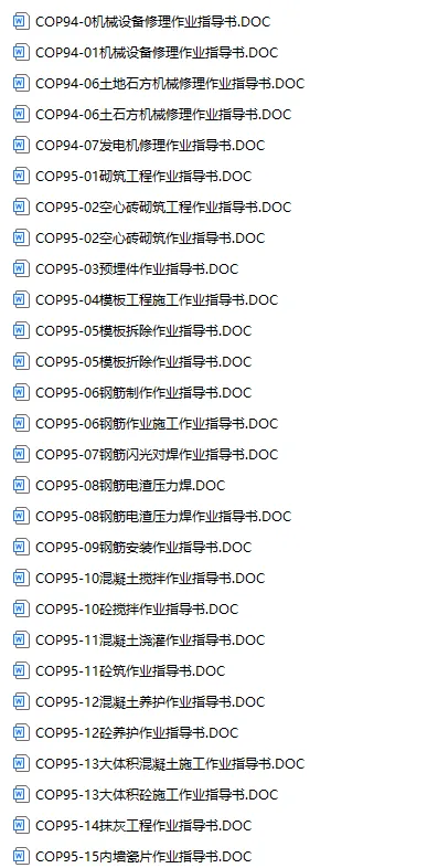 【免费下载】建筑全套作业指导书(含建筑施工、建筑机械、建筑材料、试验等80个(word可打印)