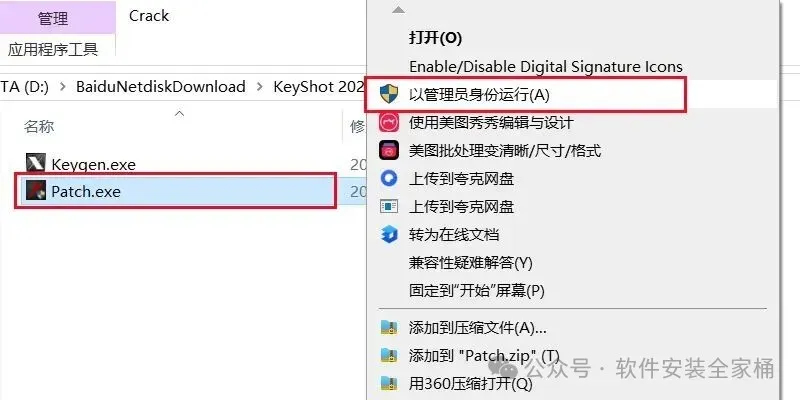 12.鼠标右键【Patch】注册机选择【以管理员身份运行】。