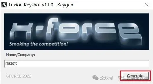 20.注册机打开后,点击右下角的【Generate】。