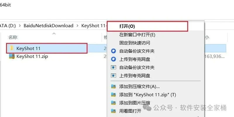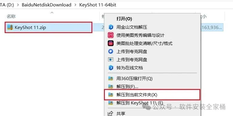 1.打开下载的Keyshot软件安装包,鼠标右击压缩包选择【解压到当前文件夹】。