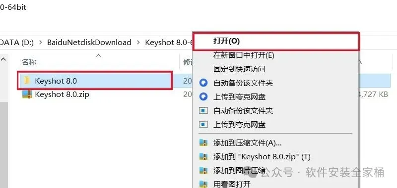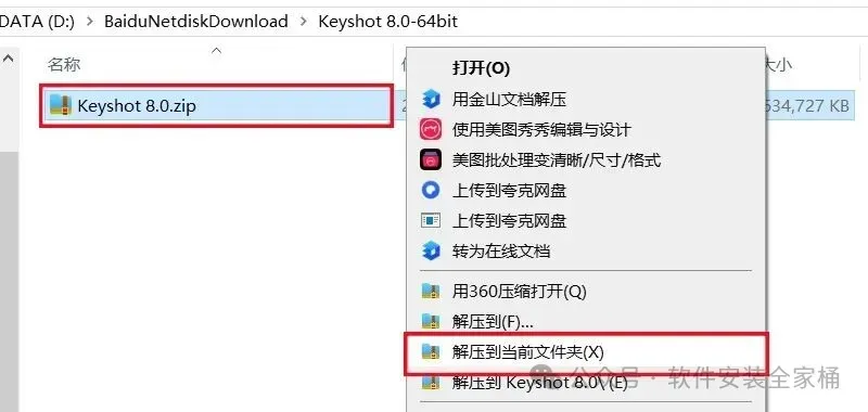 1.打开下载的Keyshot软件安装包,鼠标右击压缩包选择【解压到当前文件夹】。
