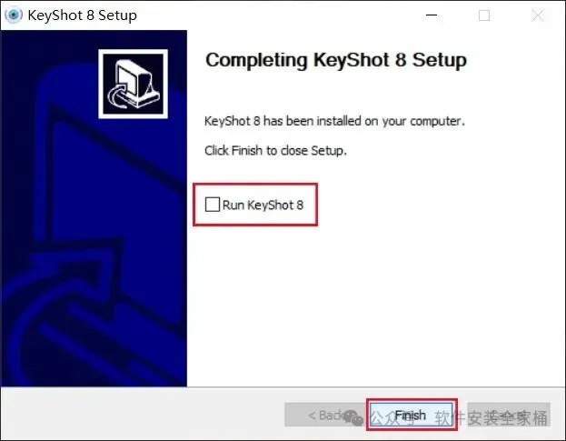 10.安装进度走完后,取消勾选【Run Keyshot 8】,然后点击【Finish】。