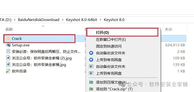 11.返回到解压的【Keyshot 8.0】文件夹中,然后打开【Crack】文件夹。