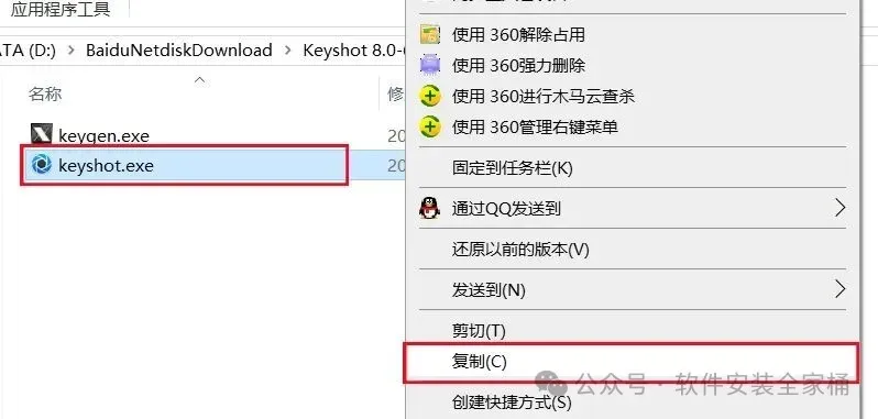 12.鼠标右击【keyshot】文件选择【复制】。