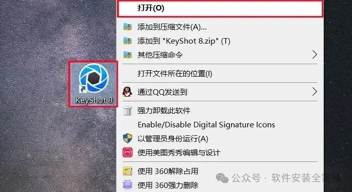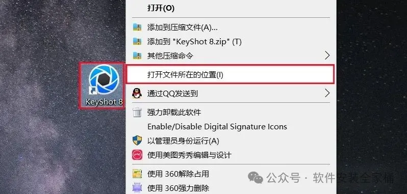 13.在桌面上找到安装的Keyshot软件图标,鼠标右键选择【打开文件所在的位置】。