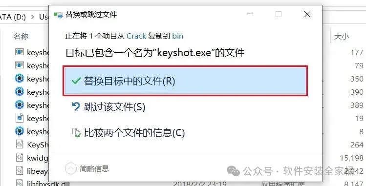 15.点击【替换目标中的文件】。