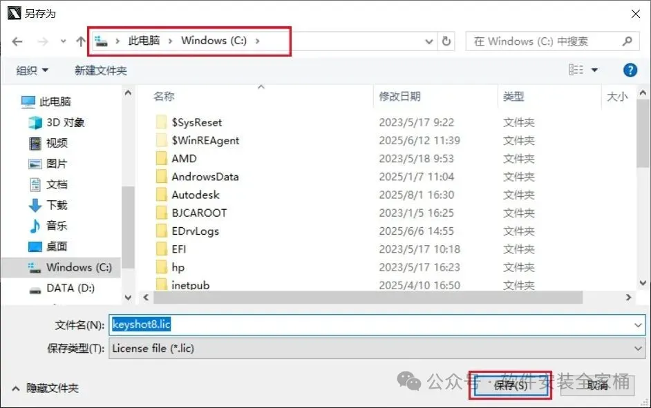18.打开C盘后,直接点击【保存】。