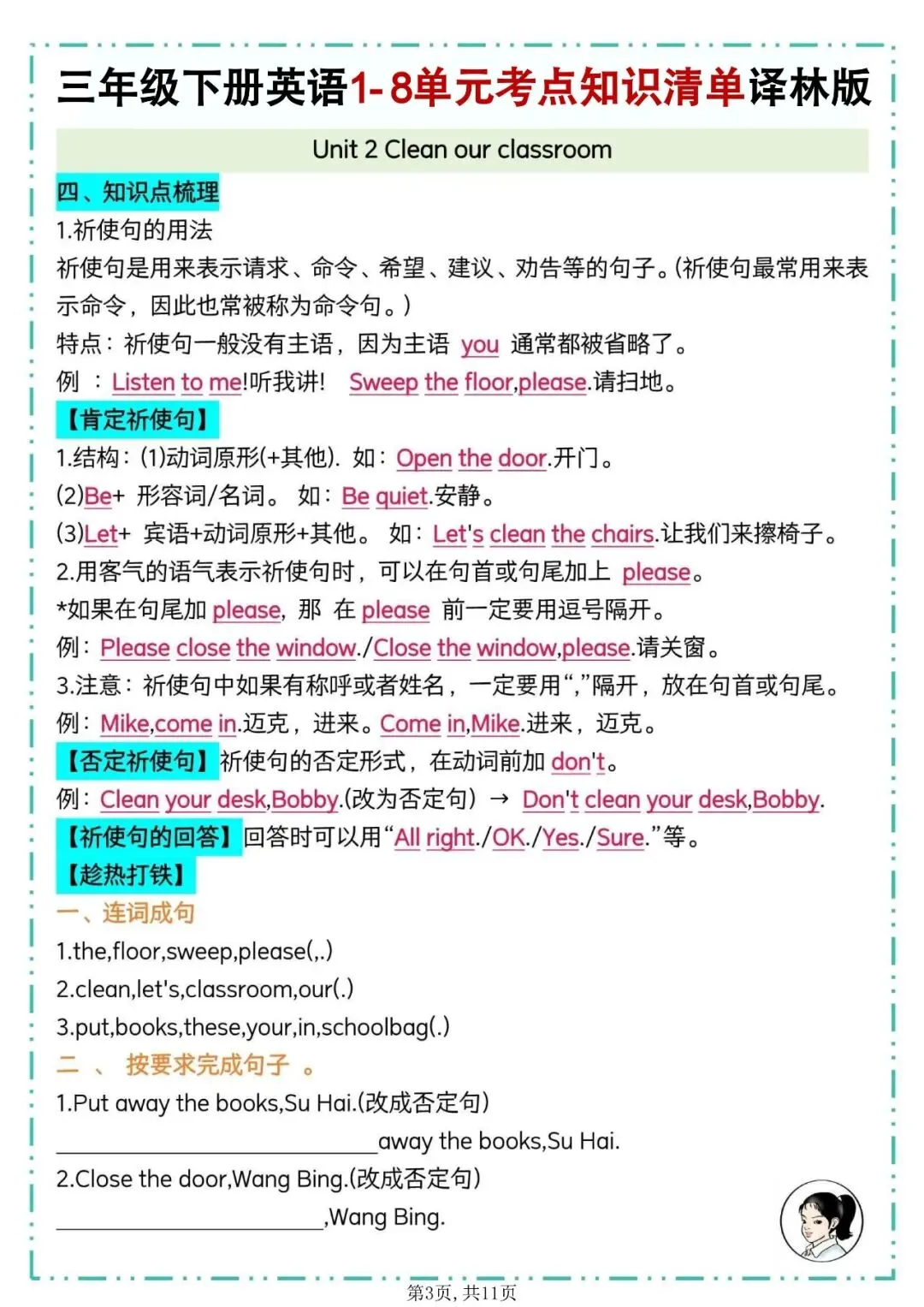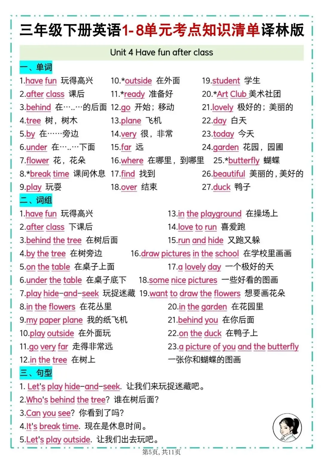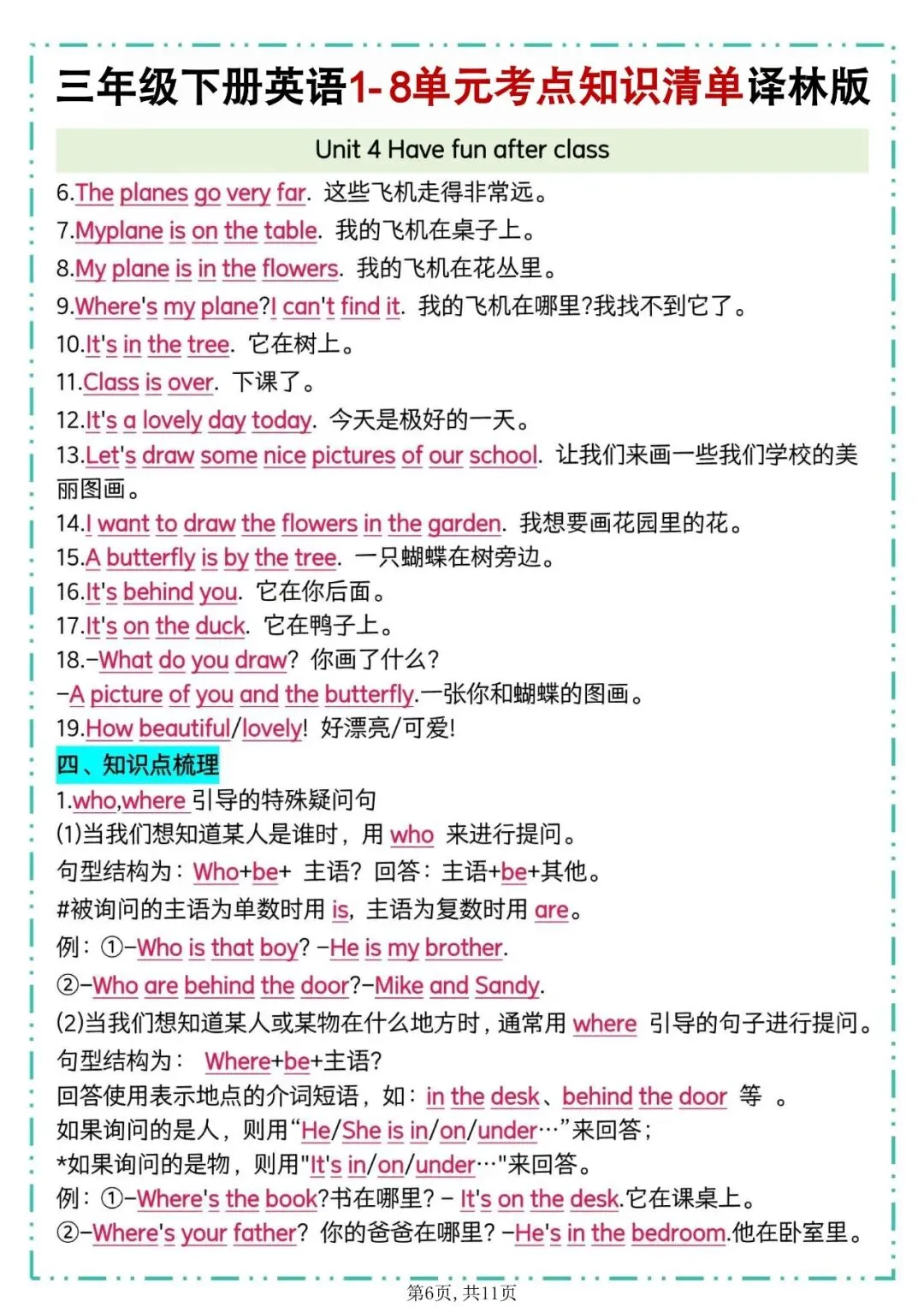 译林版三年级下册英语知识点总结【一共11页】