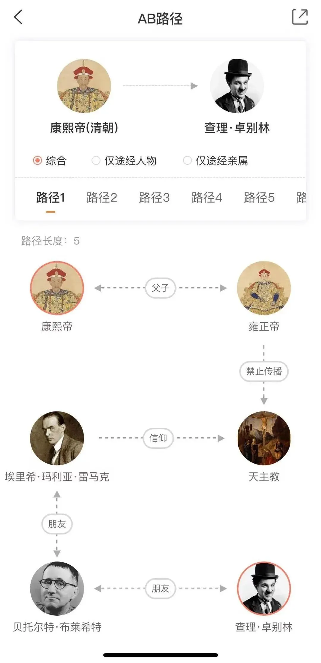 这个功能也很有意思,就 是任何历史人物或事件也许有着千丝万缕联系。