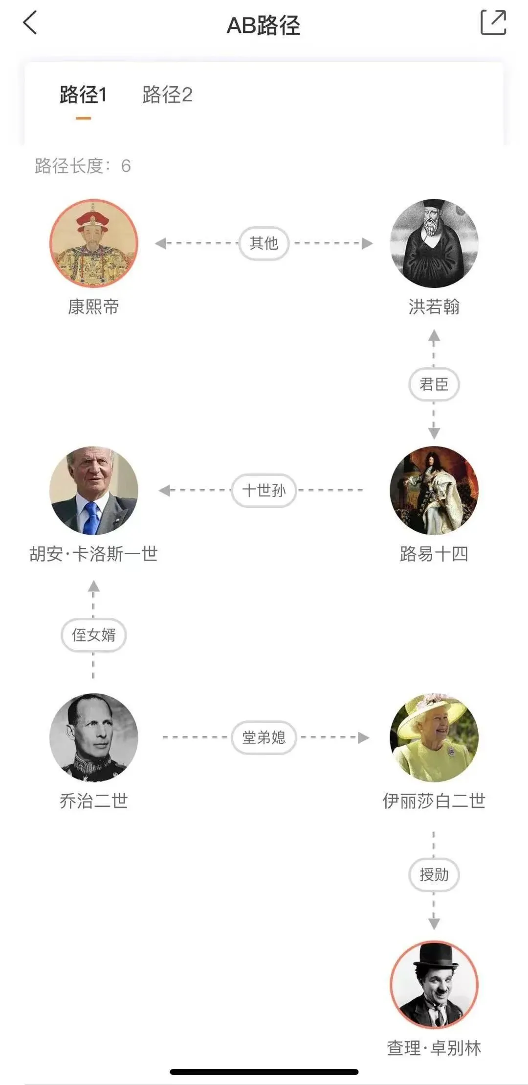 当然,如果我们细心,也会发现一些历史线索,比如在刚刚这个路径里,我们就会发现康熙帝和法国国王路易十四生活在同一时期,很多历史事件也可以对得上了。