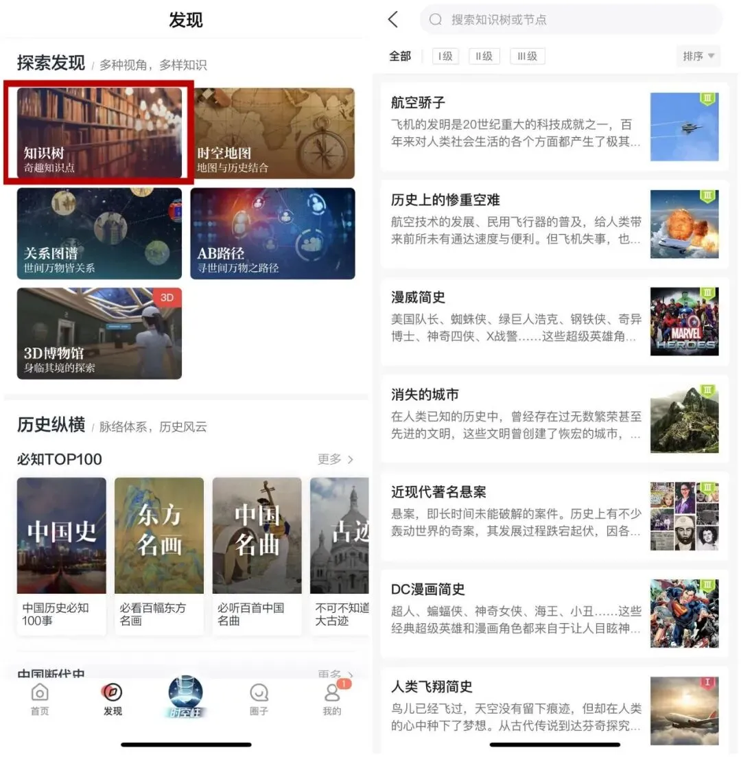 我还在APP里发现了一个 “知识树-奇趣知识点” ,里面是包罗万象的事件梳理。除了像人类飞翔简史、汽车发展史 等等,还有跟当下特别密切相关的,防疫简史,还有漫威简史、国漫崛起、世界杯简史 等,我觉得特别有意思。