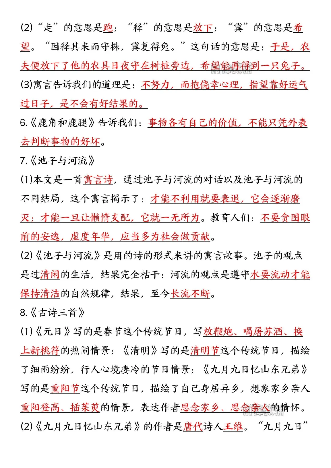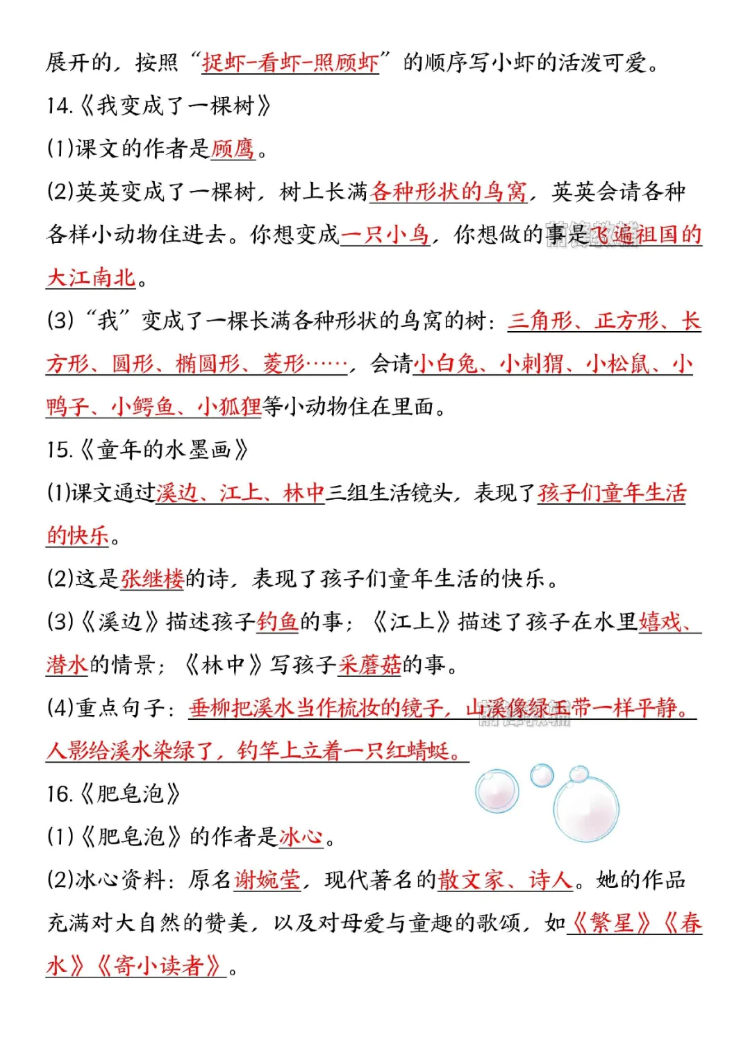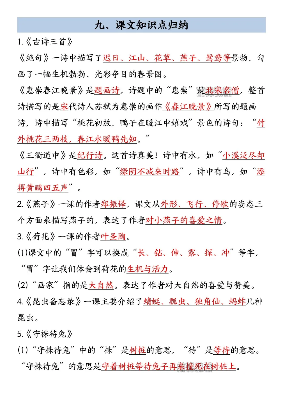 三年级下册语文寒假预习必背知识汇总(电子版可打印)