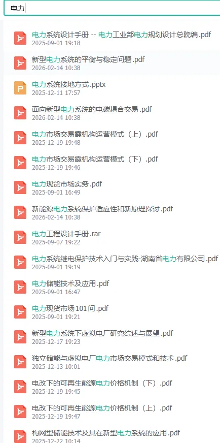 电力市场手册(精华版).pdf 今日干货分享来啦!为大家带来一份完整PDF学习资料【电力市场手册(精华版).pdf】69页中部分截图,并附上检索目录,需要的小伙伴扫码可下载获取。 推荐阅读 并网光伏电站运维管理方案73页.pdf 【干货分享】362页 光伏电站建设全流程全套课件全套 工程建设标准工艺图集标准工艺分册(下册)233页.pdf 地面光伏发电施工流程与组织方案解析研究99页.pdf 最新整理风光储项目开发全流程实操手册.xls 光伏电站验收标准(行业标准).docx 光伏技术及项目工程技术手册(国际版800页).pdf 黑龙江2.16GW源网荷储一体化示范项目建设方案73页.docx 80MW/160MWh储能示范项目工程招标清单模板.xls