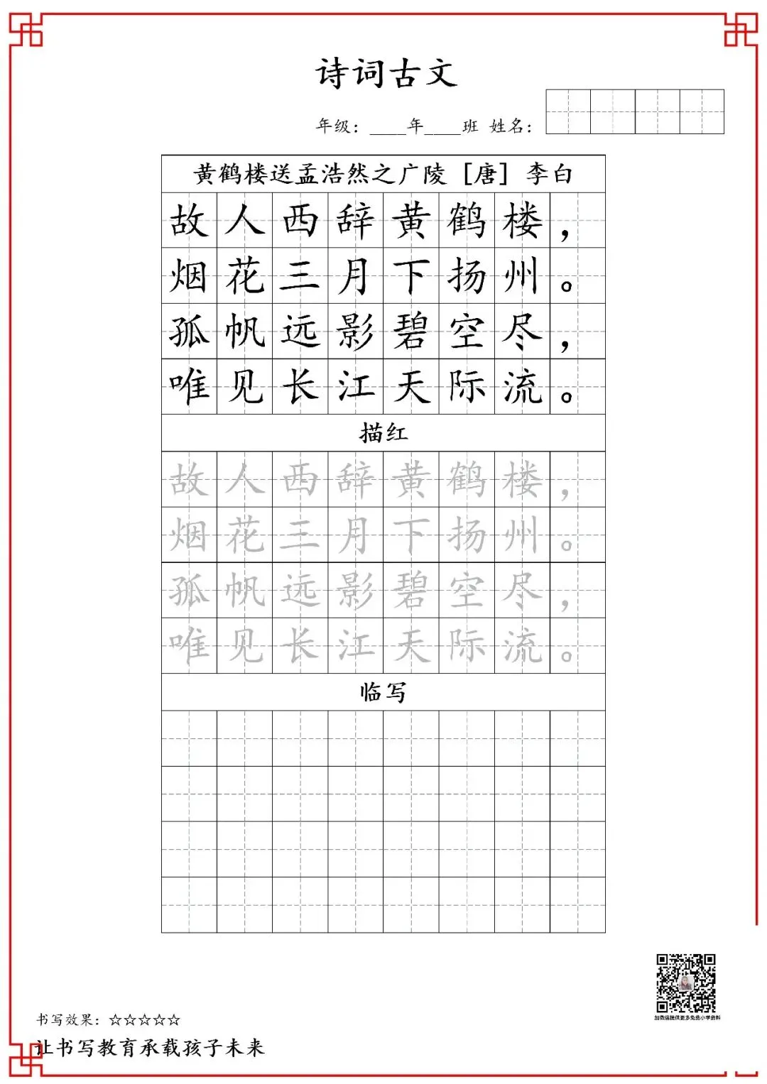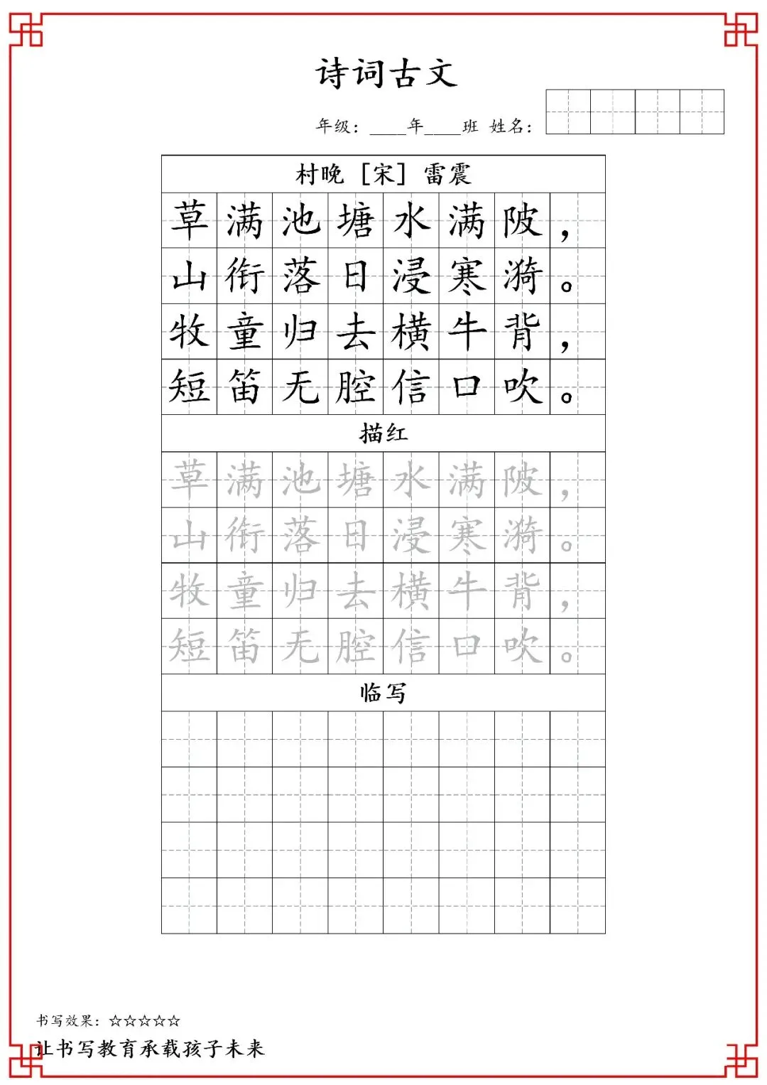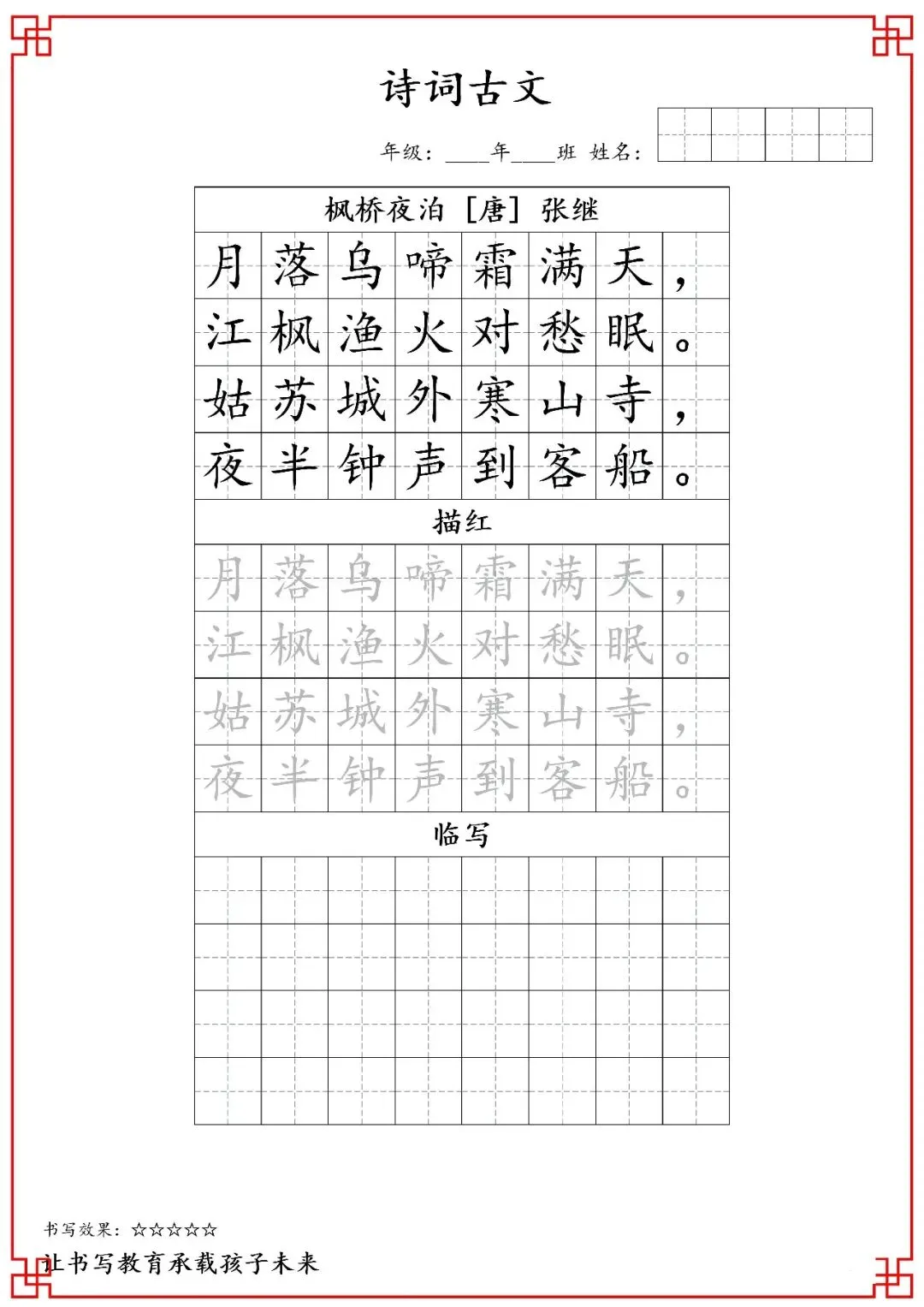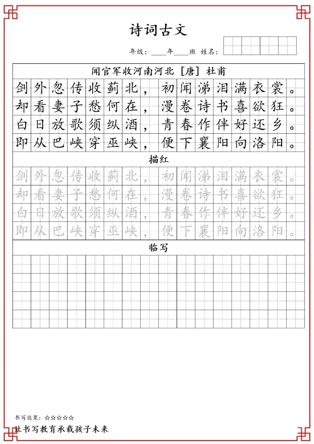五年级古诗词字帖(含电子打印版)
