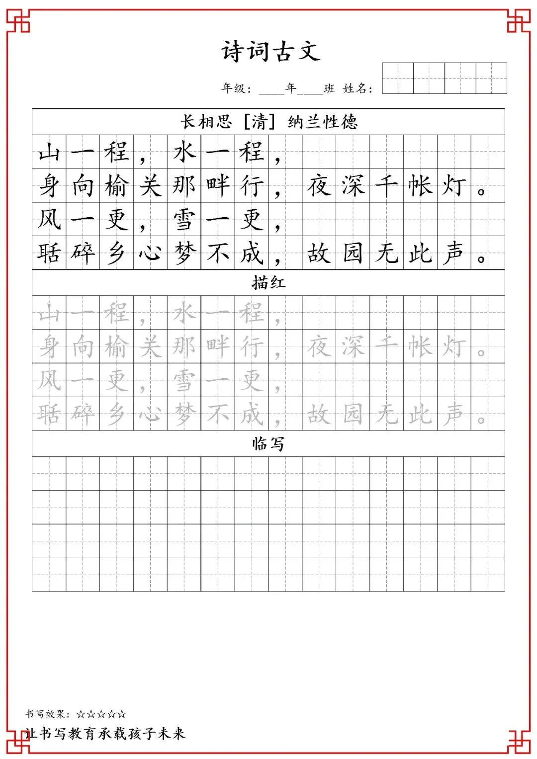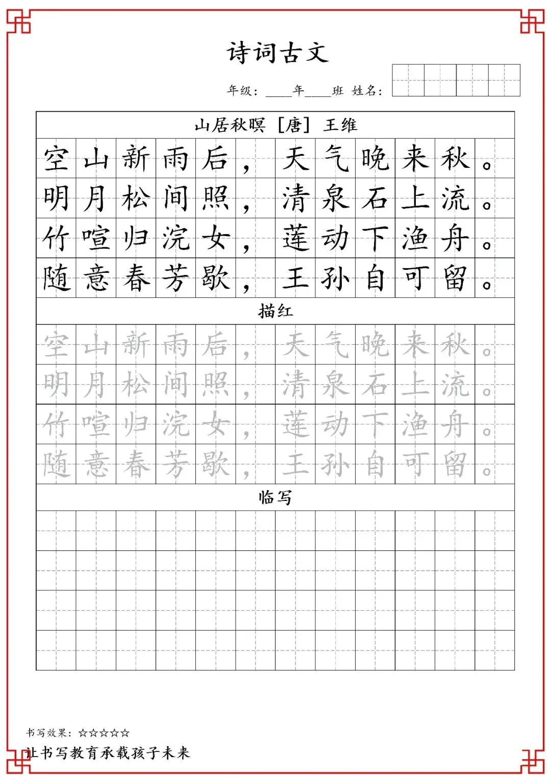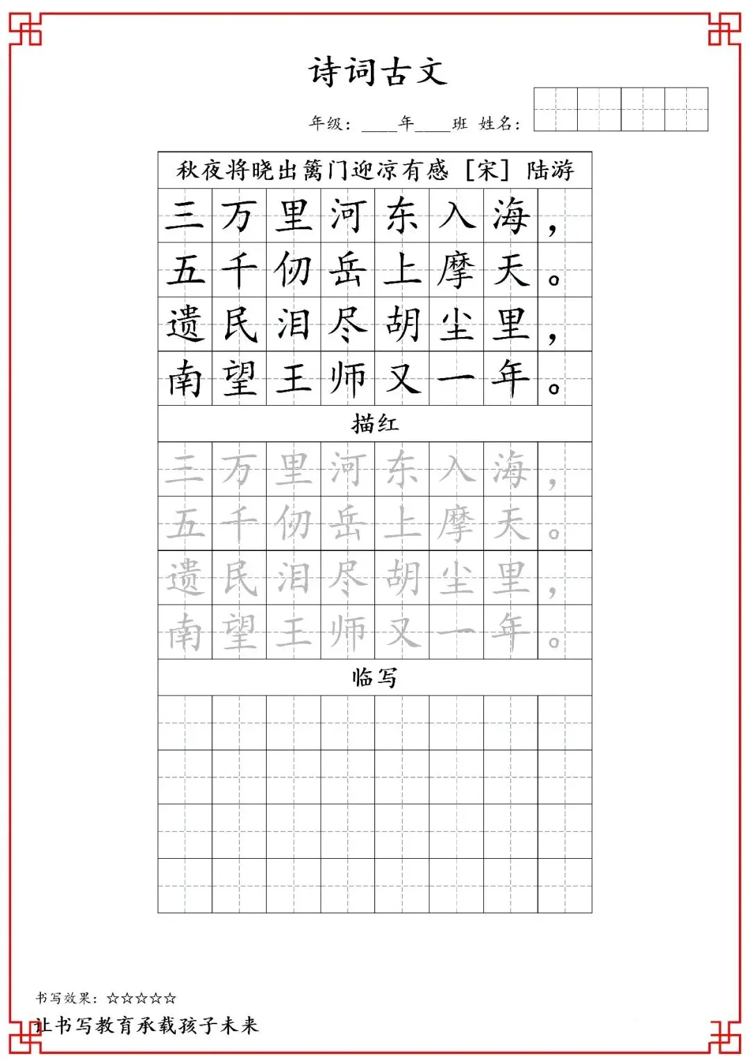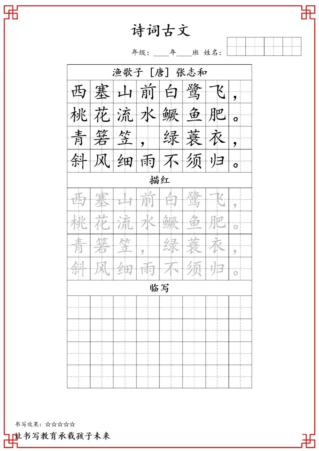 五年级古诗词字帖(含电子打印版)