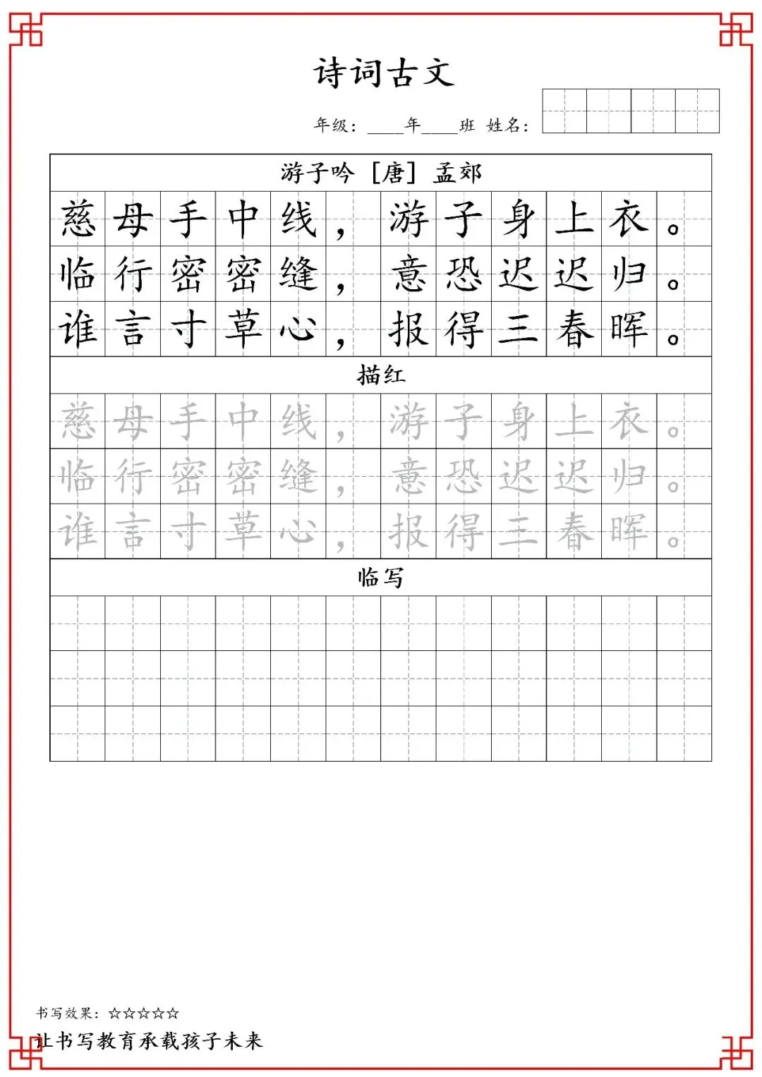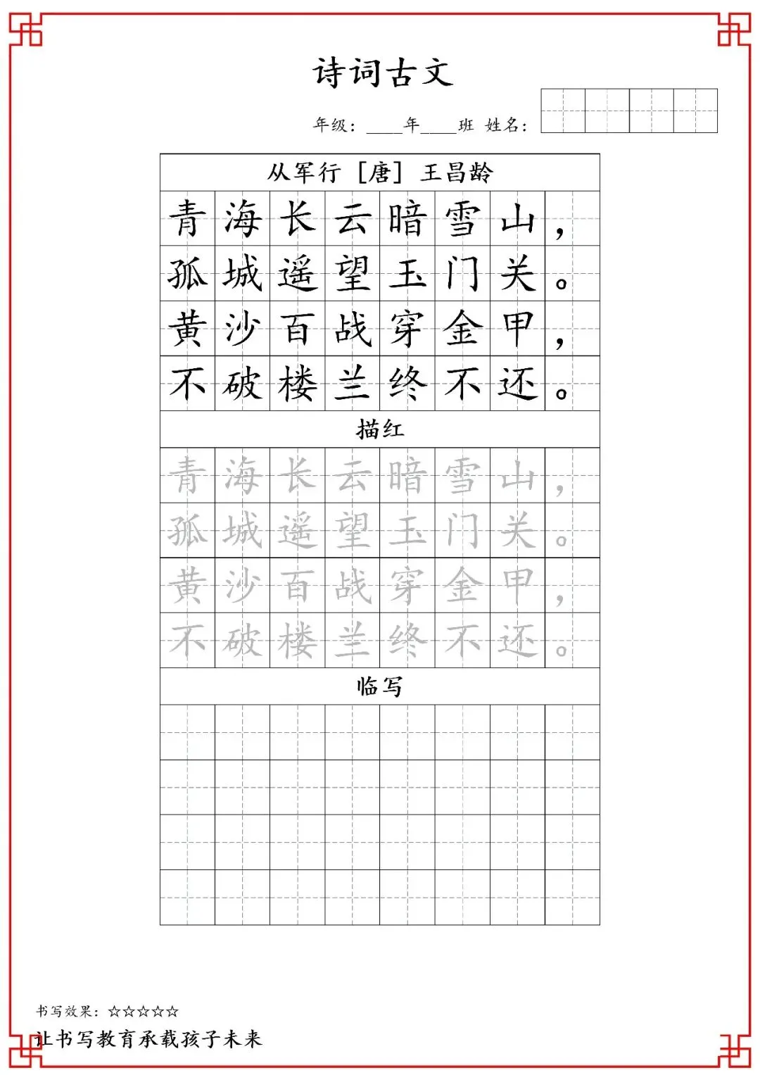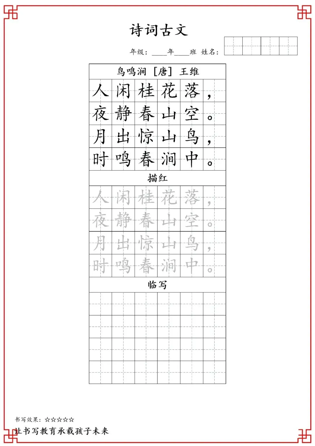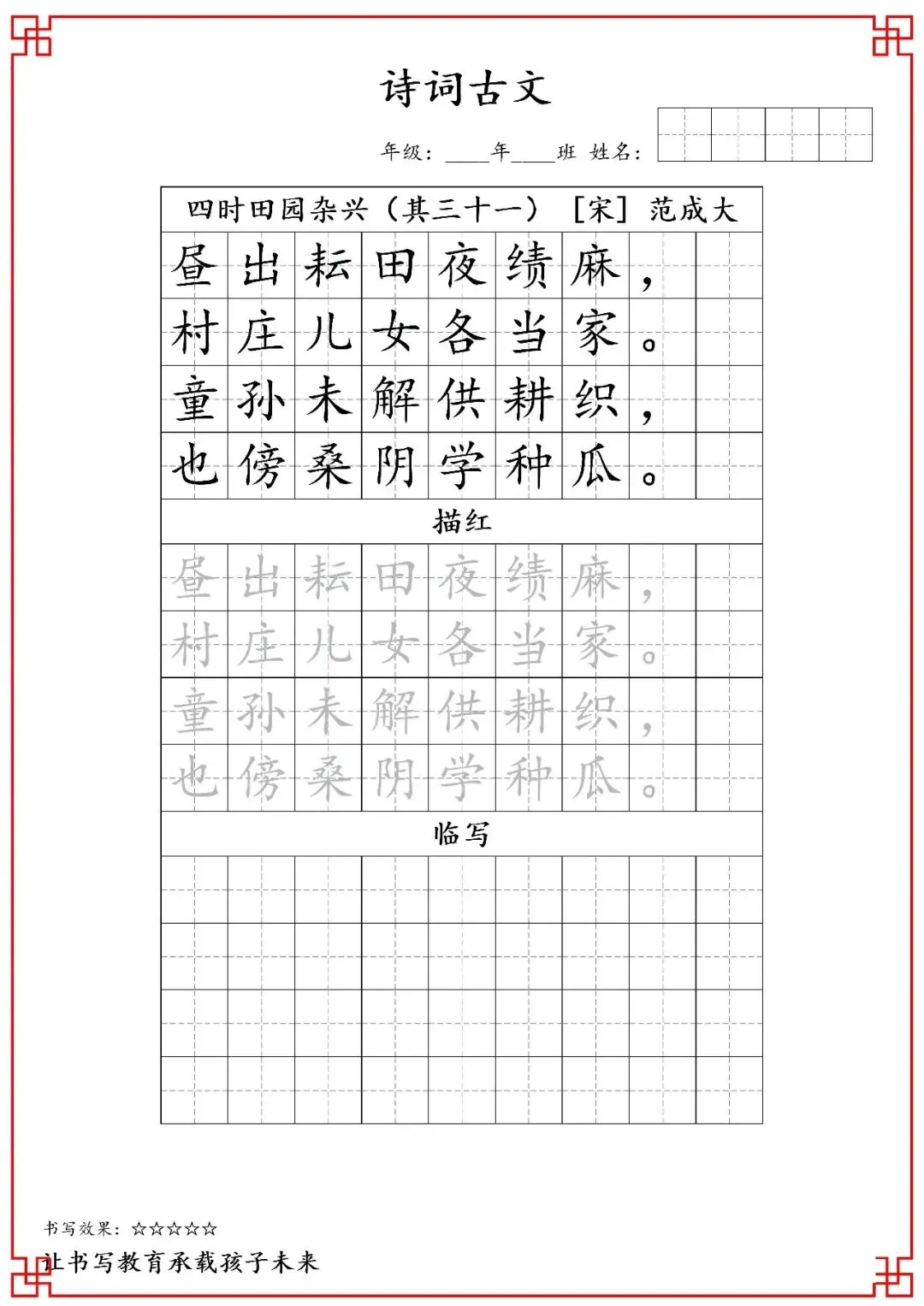 五年级古诗词字帖(含电子打印版)