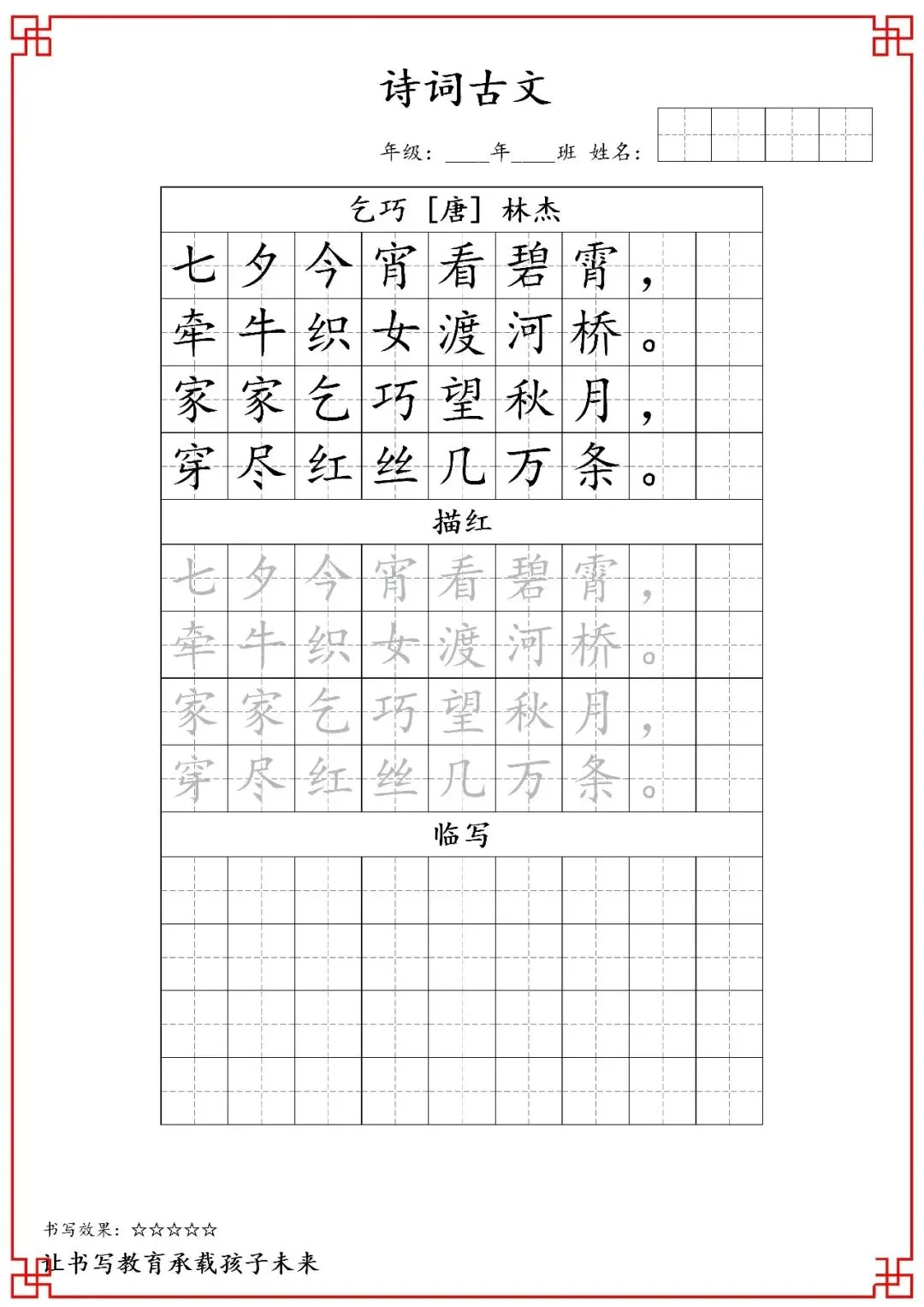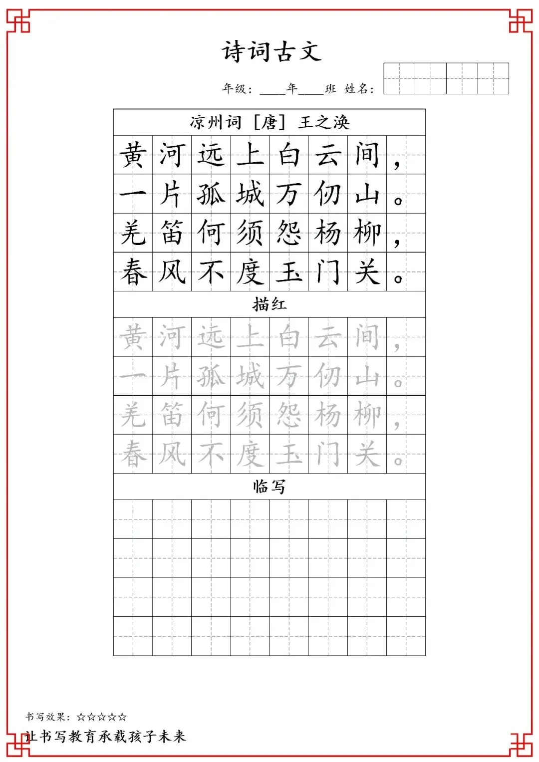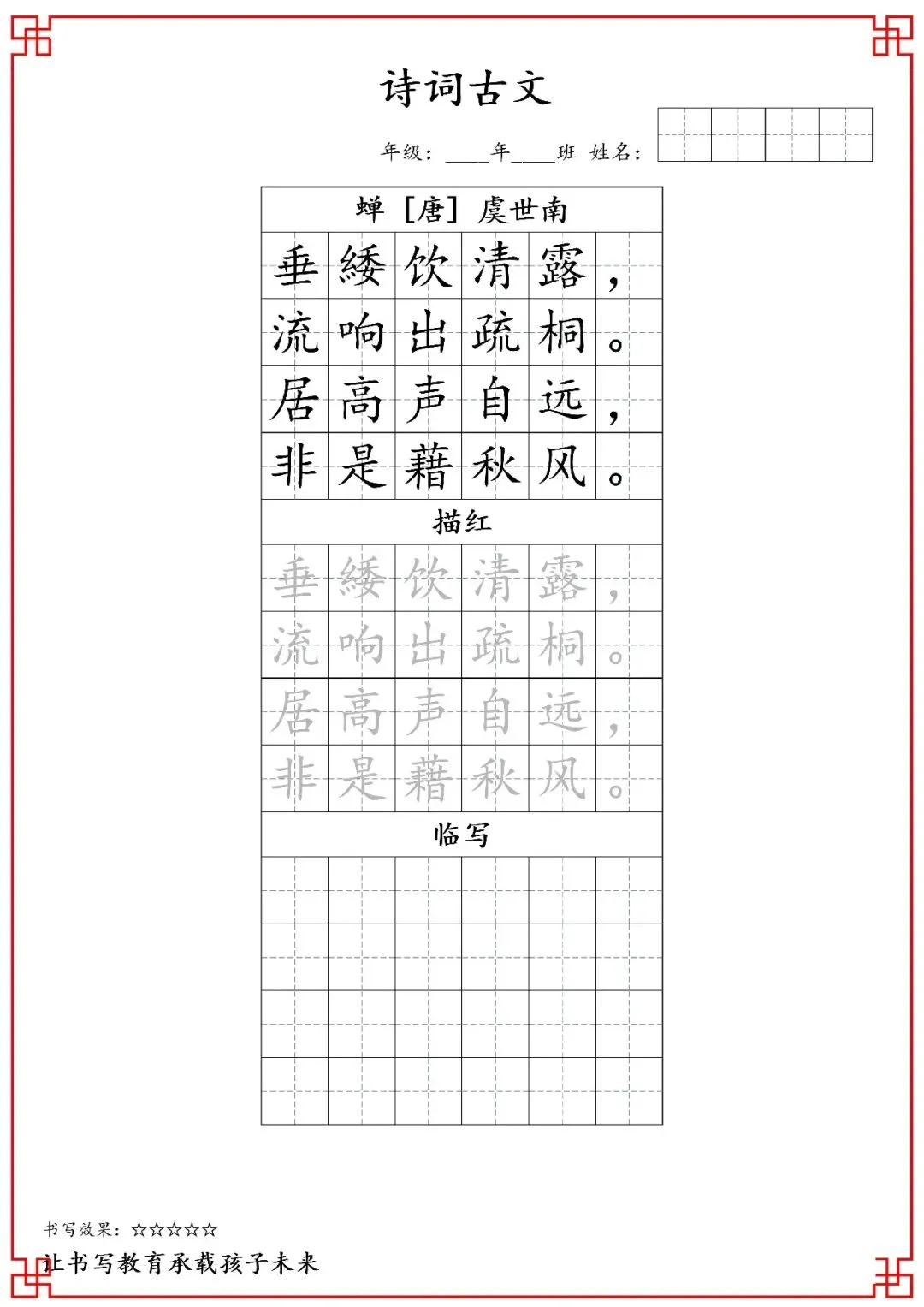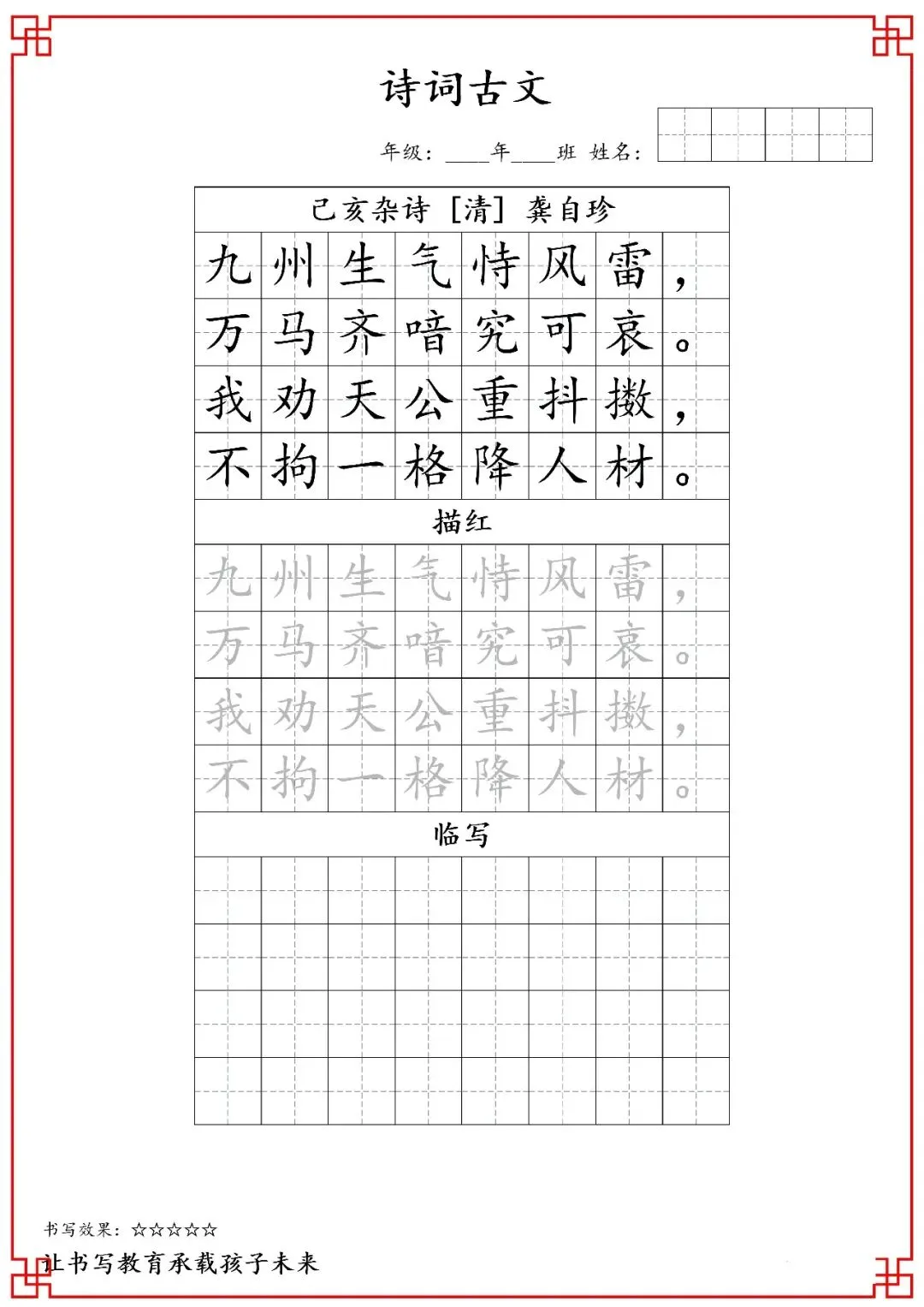 五年级古诗词字帖(含电子打印版)