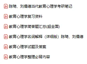 今天分享的资料是「0031-教育心理学」电子版+学习笔记+知识点总结+期末考试重点+复习资料+习题集及答案+名词解释+历年真题试卷及答案+题库及答案+复习重点+思考题及参考答案+公式总结+考试重点基础题+知识总结+高清PDF可打印+免费分享!