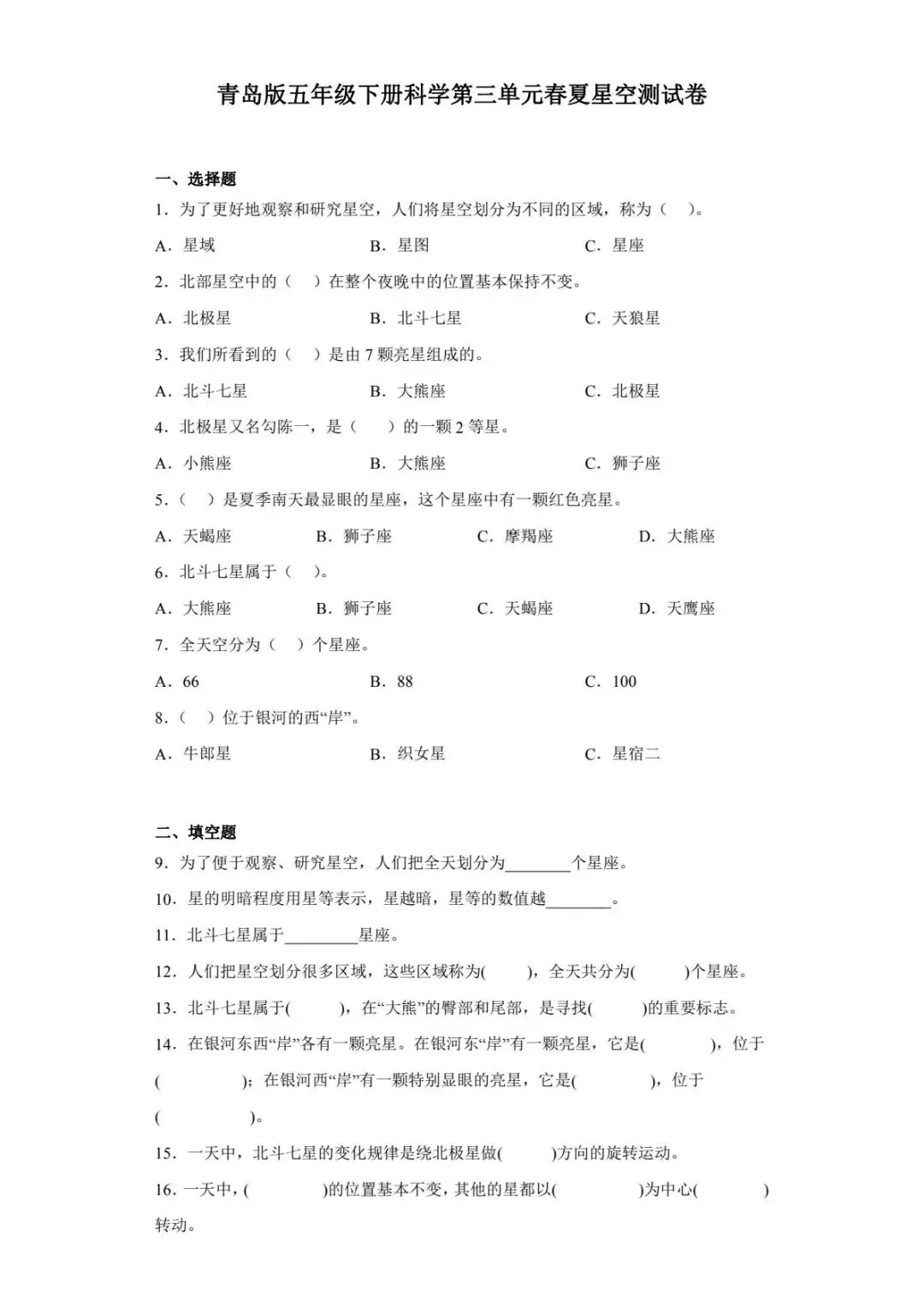 五年级家长们,福利来啦!孩子学习青岛版五年级下册科学第三单元,知识点掌握得好不好心里没底?想精准检验孩子学习成果,却苦于没有合适的试卷?别着急!我们为大家精心准备了这个单元的测试卷。