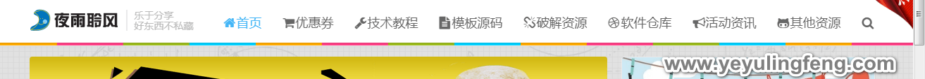 /* 顶部边栏加横条美化*/ /*----www.yeyulingfeng.com----*/ background:url(图片链接或者路径) repeat-x scroll 0 100%;