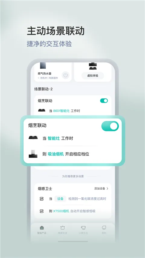 它让手机和智能硬件快速互联,设备间还能场景联动,覆盖备餐、清洁、烹饪、厨房云盾、一键离家五大系统,轻松掌控全套设备,畅享智慧厨房的乐趣。