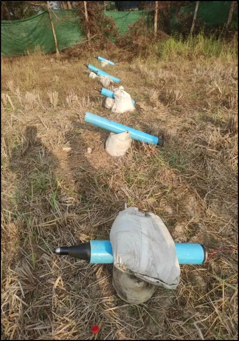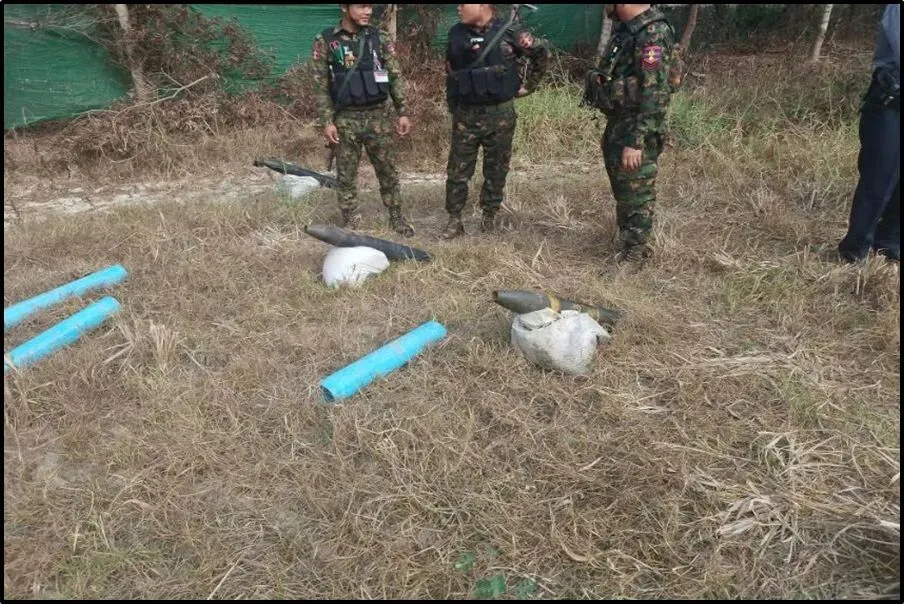 就此而言,据民众报告,2月21日早上6:30左右,在仰光省莱古(Hlegu)镇辛蓬(北)(North Sin Phon)村附近的田地里发现了装有蓝色PC管的可疑物品。当地安全部队随即前往调查,查获6枚装有蓝色PC管的冲击波火箭,这些火箭已被PDF恐怖分子准备用于发射。为了保护民众安全,这些火箭已被依规安全拆除。