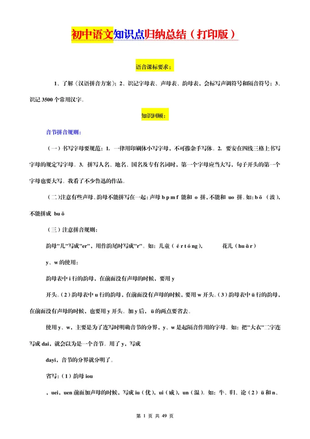 本期给各位带来的是:初中语文知识点归纳汇总(超详细!可打印!)