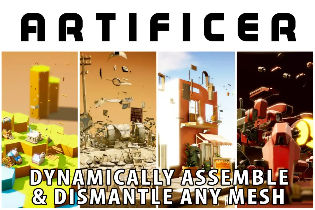 在 Unity 项目中,实现“物体自动拼装”“建筑升级重构”“角色碎裂重组”等视觉效果,传统方式往往依赖大量预制动画、破碎模型或第三方建模工具预处理。而 Artificer 则提供了一种完全程序化的解决方案——无需预处理模型,即可对任意 Mesh 进行拆分、组装与动态重构。