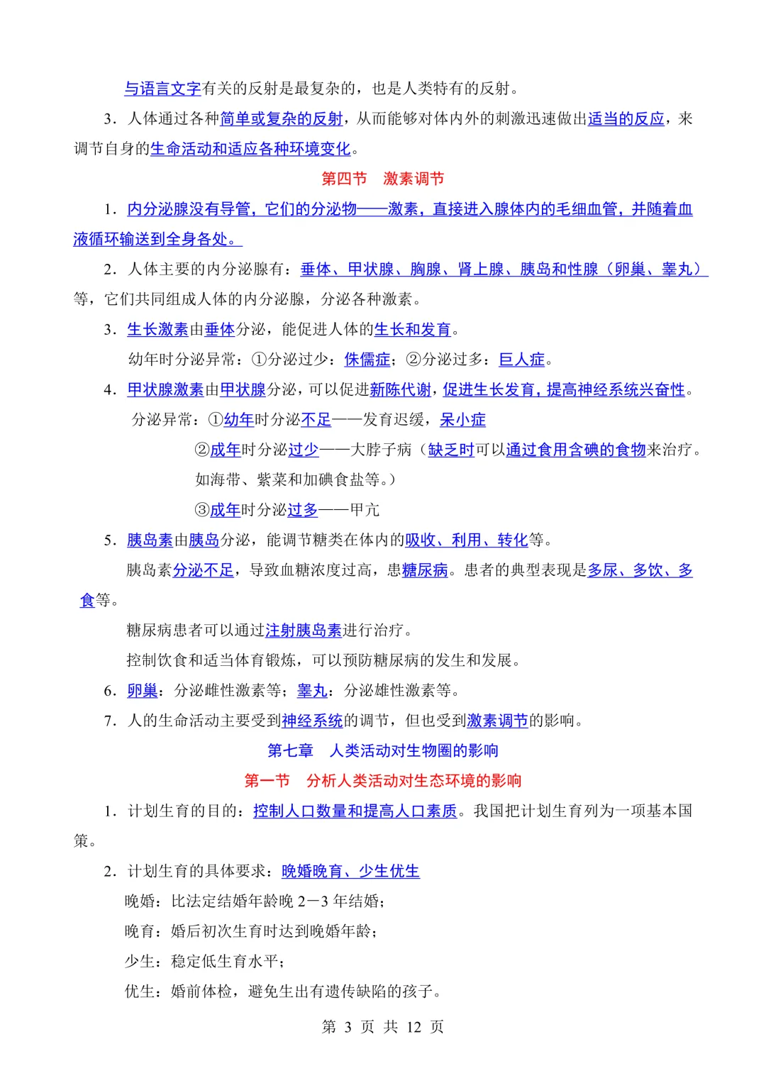 七下生物知识点总结(鲁科 54 版)可打印!
