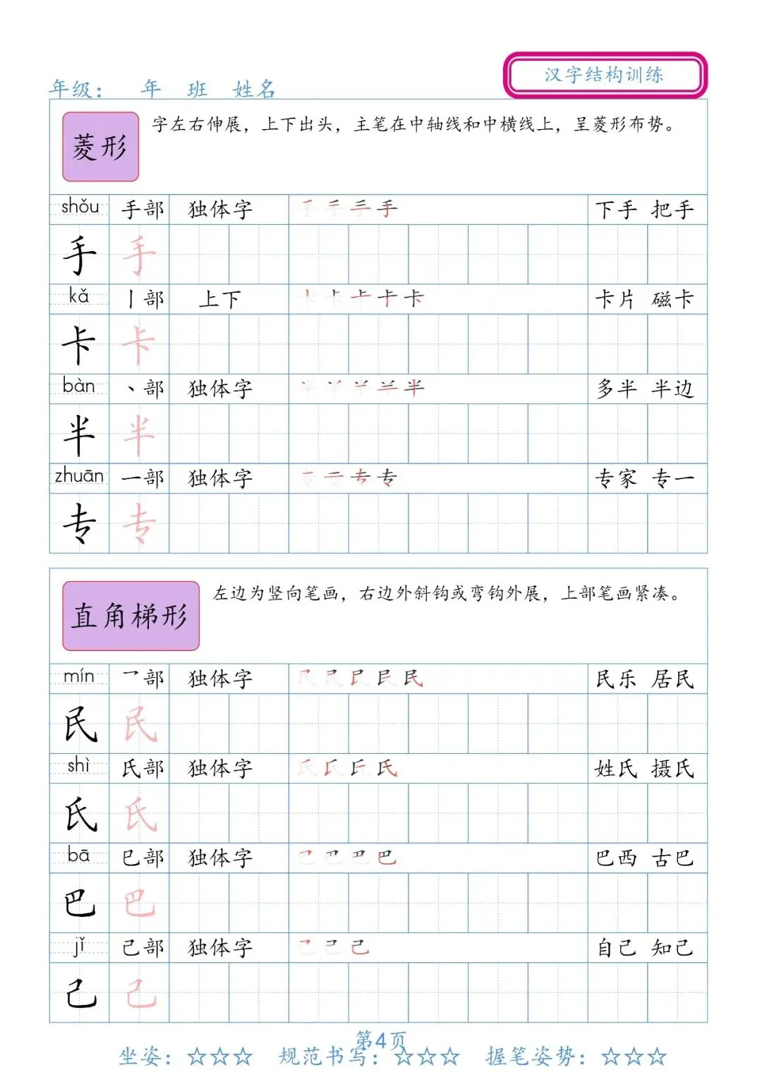 硬笔楷书教材,汉字结构训练,PDF免费下载 硬笔楷书教材,基本笔画训练 硬笔楷书教材,偏旁部首训练,PDF免费下载 通过网盘分享的文件:汉字结构新.pdf 链接: https://pan.baidu.com/s/1OUeXnsWAeJrEVYQXfYPW_g?pwd=vhfe 提取码: vhfe