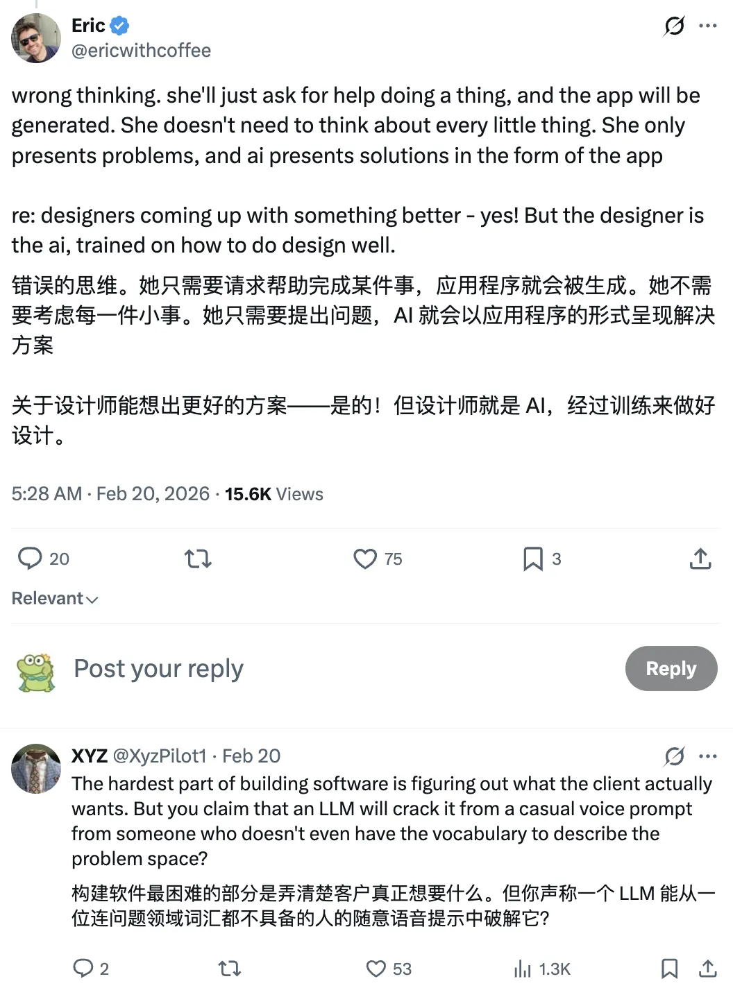 然后有人站 Karpathy,说未来 AI 就是好的设计师。