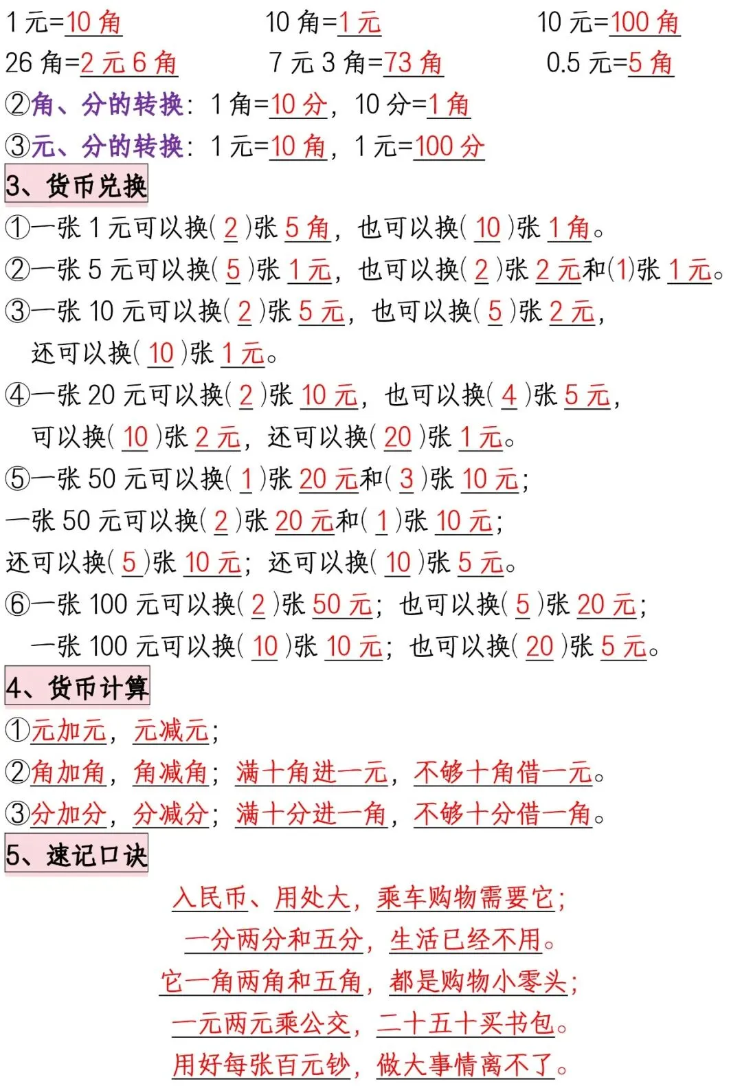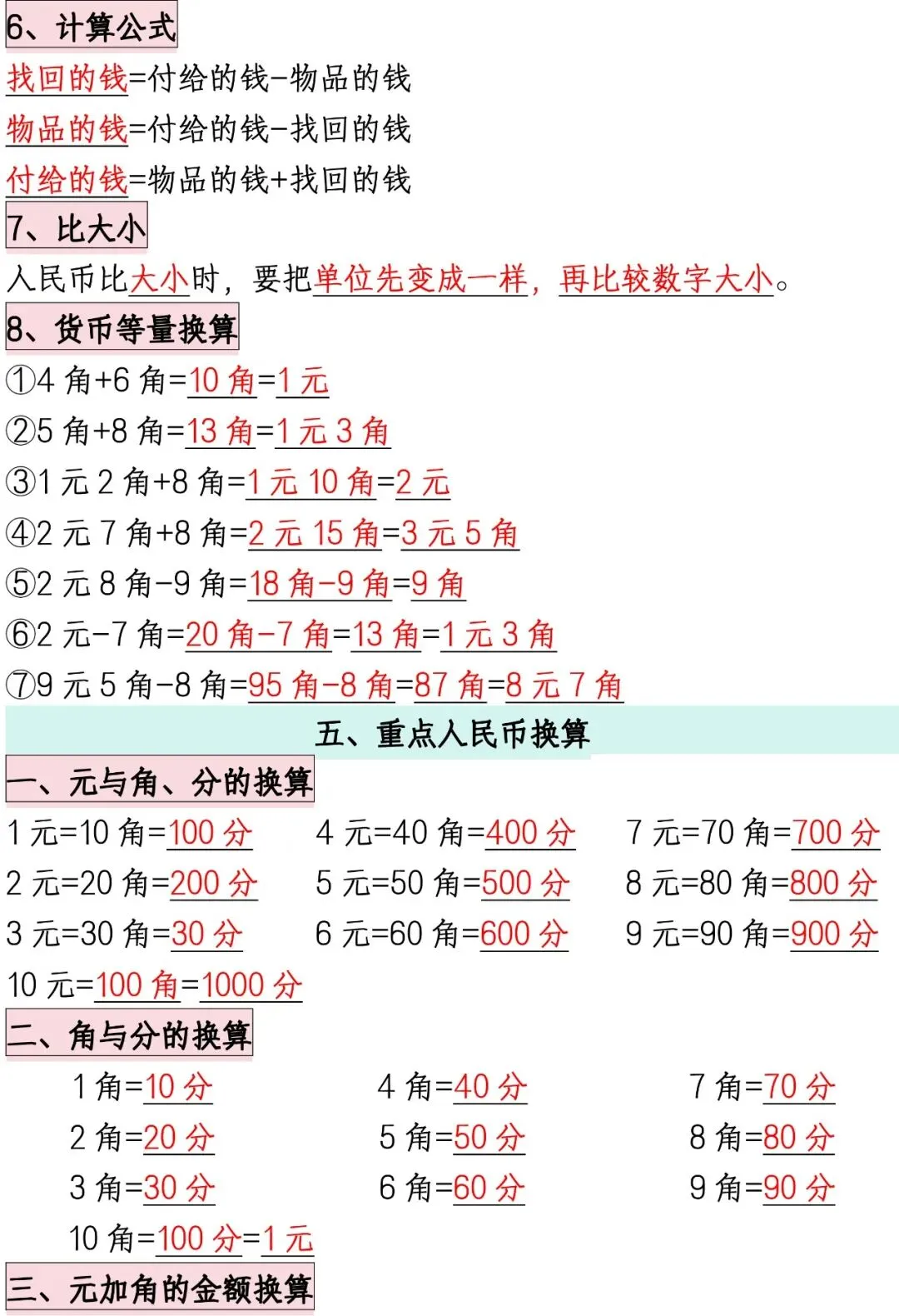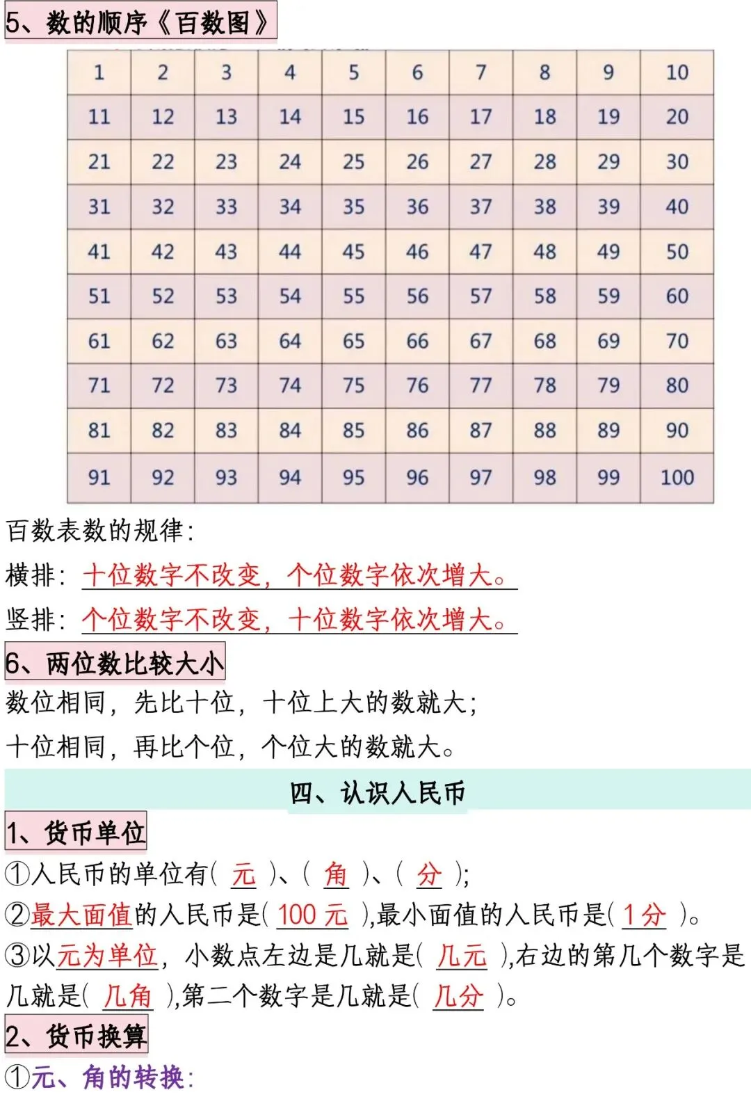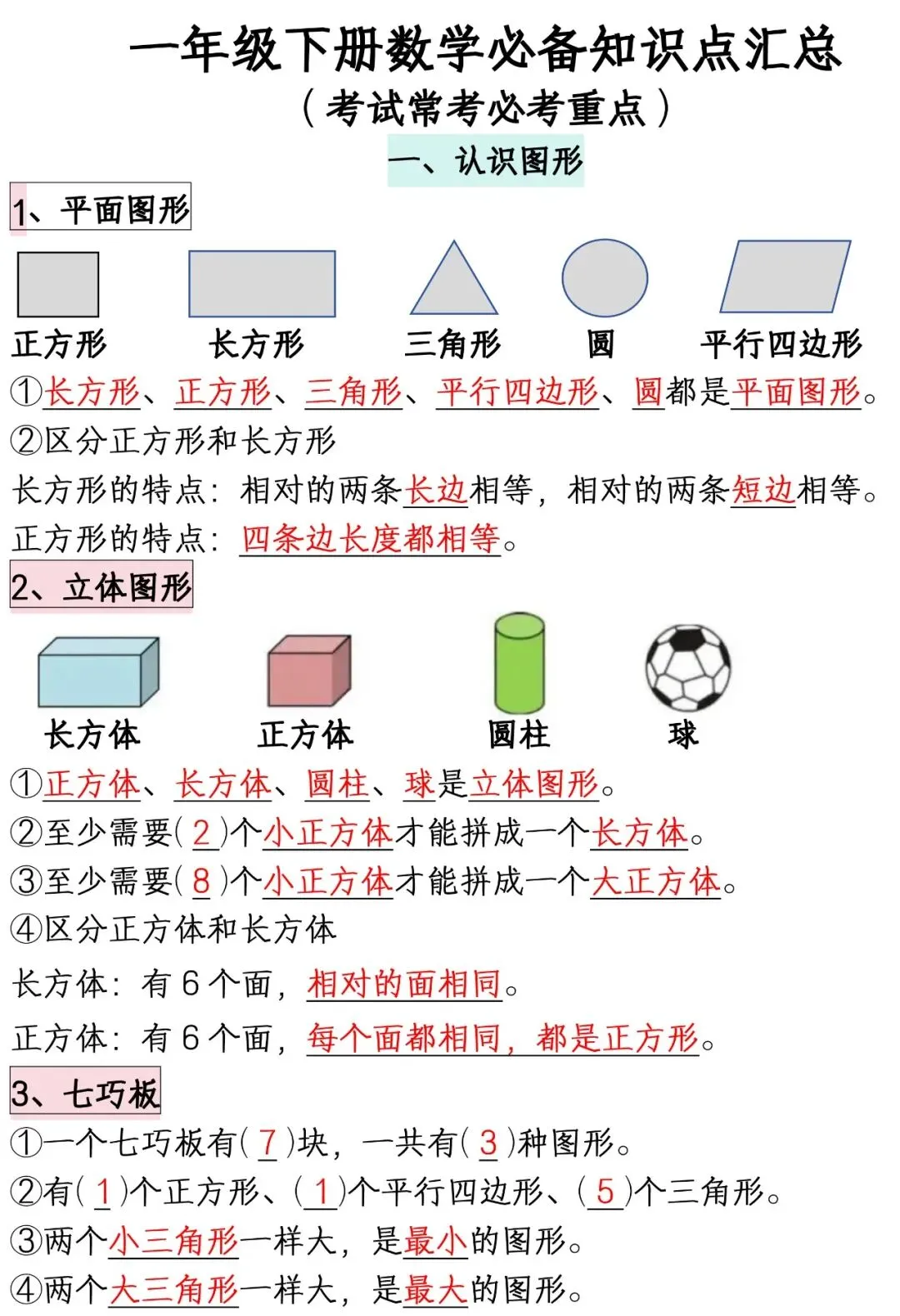 一年级下册数学必备知识点汇总【共8页】