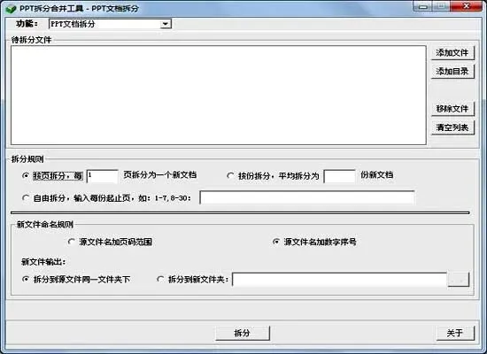 这种情况下,我们可以使用“PPT批量拆分合并工具”中的“自由拆分”功能。例如要提取7至14页,20到25页: 输入“7-14,20-25”,点击“拆分”按钮,就可以提取出对应的页面了。