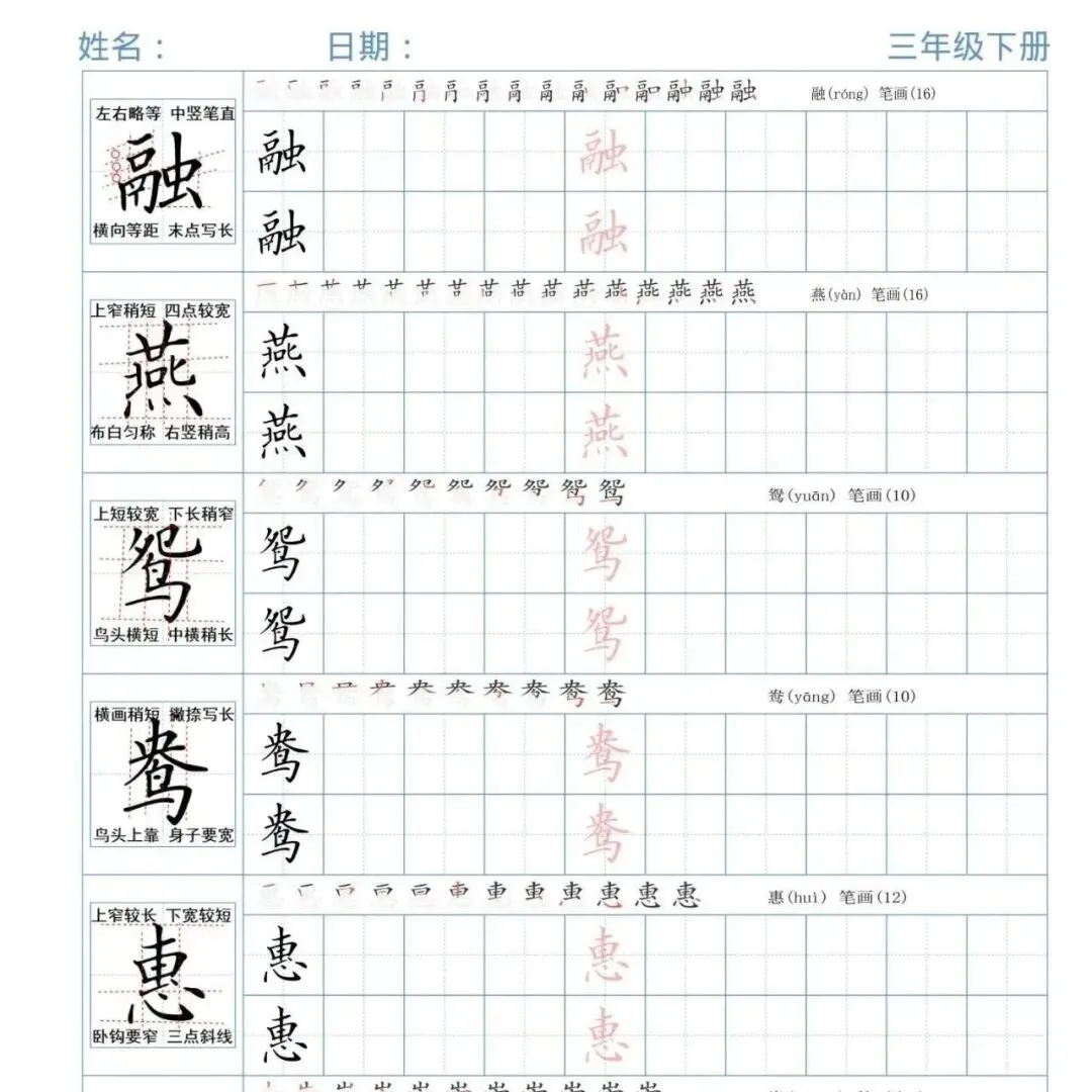 语文三年级(下册)《同步字帖精讲》|可下载打印