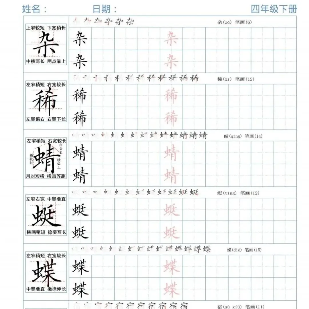 语文四年级(下册)《同步字帖精讲》|可下载打印