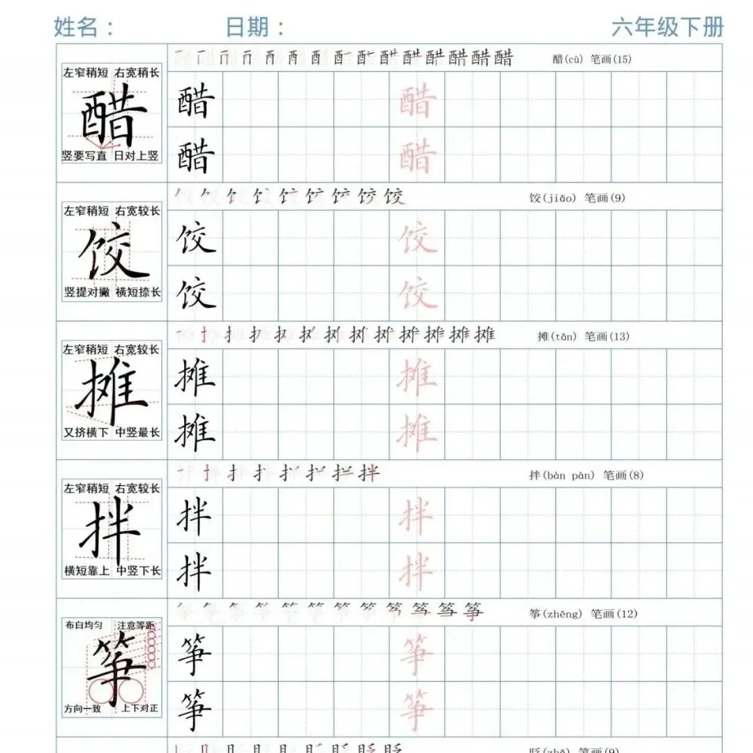 语文六年级(下册)《同步字帖精讲》|可下载打印
