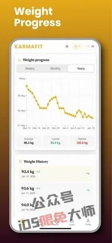 【Karmafit: Weight & BMI Tracker】一款健康健美体重管理工具,以趣味激励、数据追踪为特色,实现体重、BMI的精准记录与可视化分析。