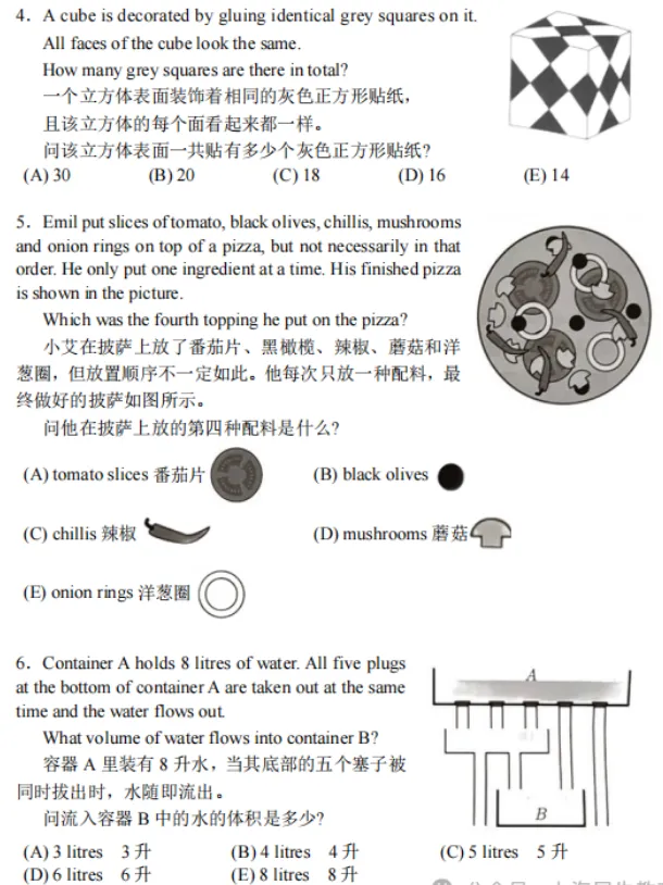 低年级的考试题目十分有趣,就算学生不打算参加竞赛,也可以领取,让孩子平时练练手,锻炼数学思维。