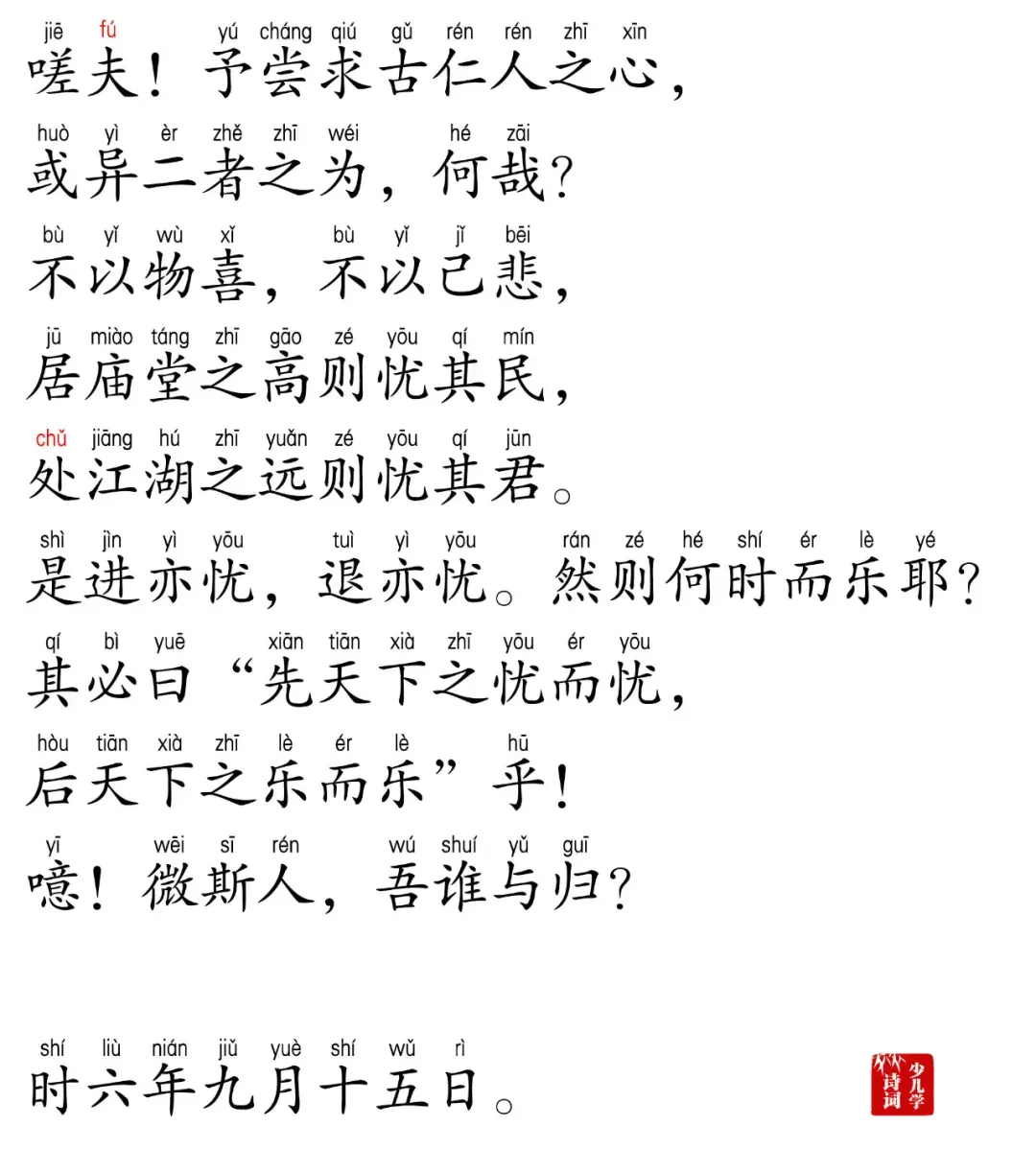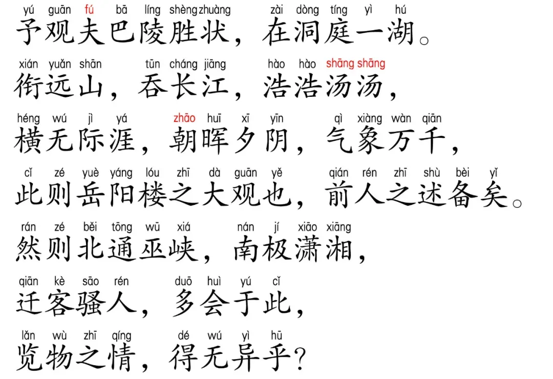 《岳阳楼记》全文带拼音,下载pdf,可直接打印