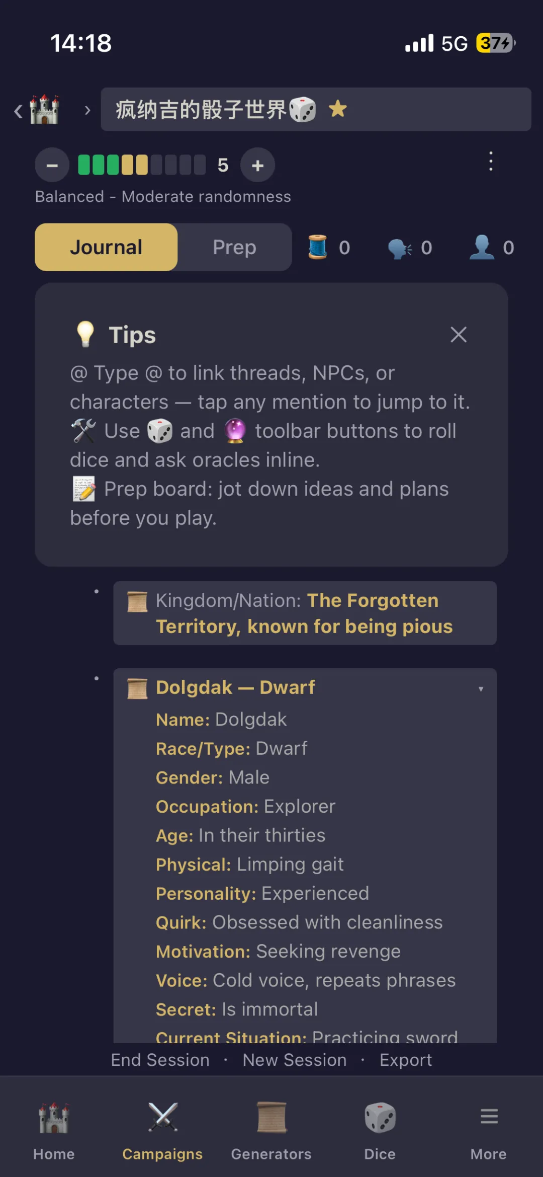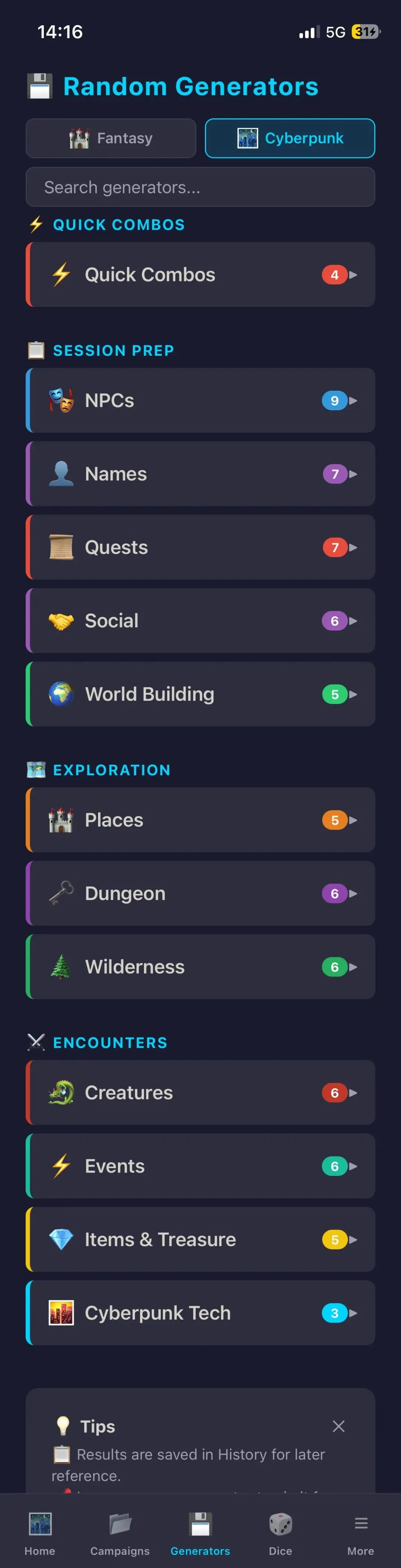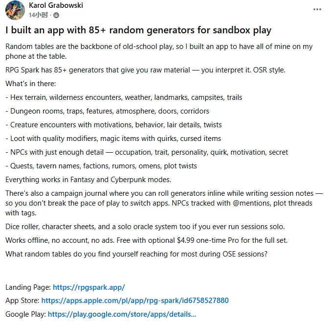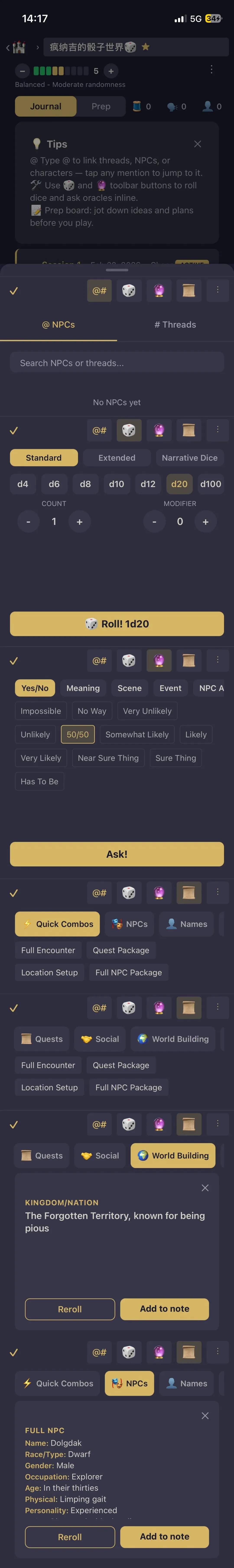 我做了一款内置 85+ 随机生成器的应用,专门用于沙盒跑团。