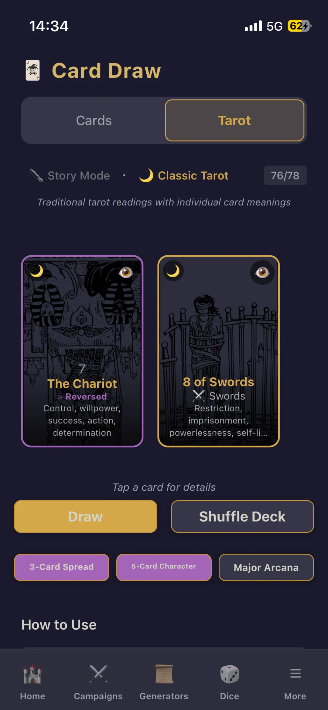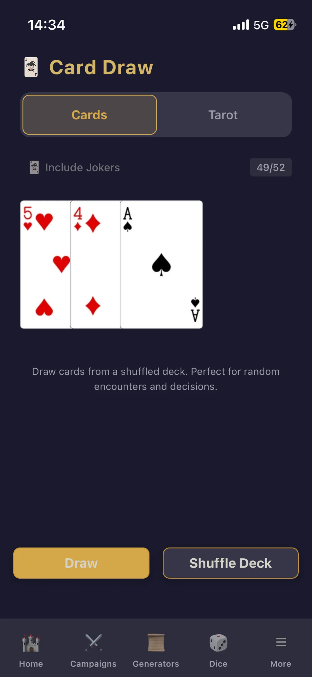 与此同时,这个软件还内嵌了扑克抽牌功能(为类似《狂野世界》《死境》,早期的“鸦阁”等规则/战役提供工具)以及塔罗牌抽牌功能(例如后期的“鸦阁”战役就需要塔罗牌)。