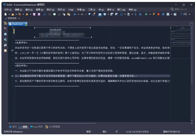【289实用软件】开源全功能文本编辑器 | RJ TextEd v16.55.1 中文绿色版