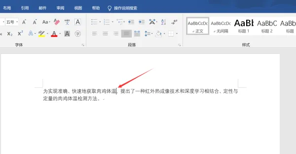 2、将光标移至需要引用文献的文字后面,如“哪一年”需要引用文献,则将光标移动至“哪一年”后。