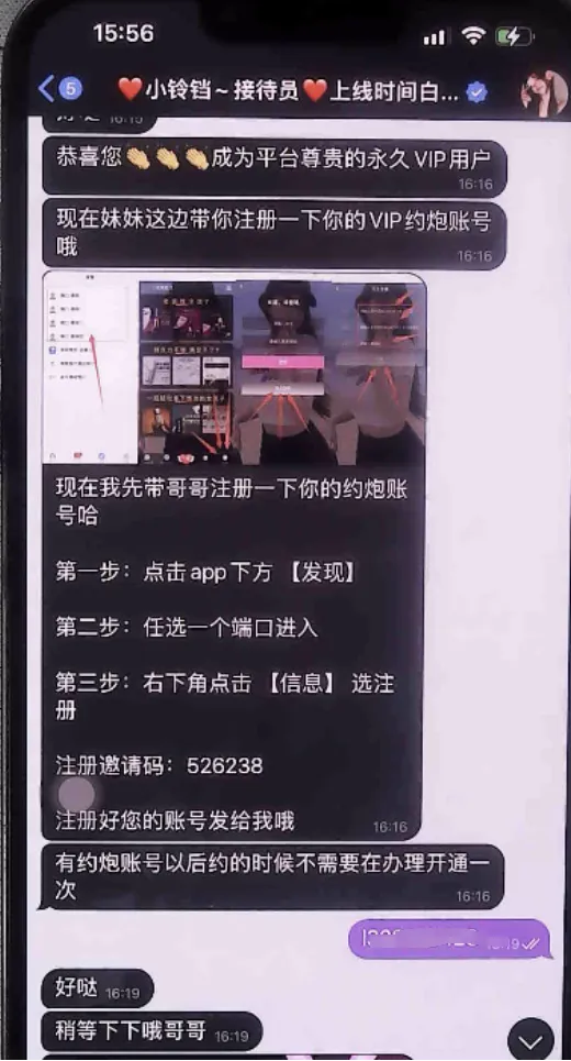 该APP内接待员发来“约炮”信息