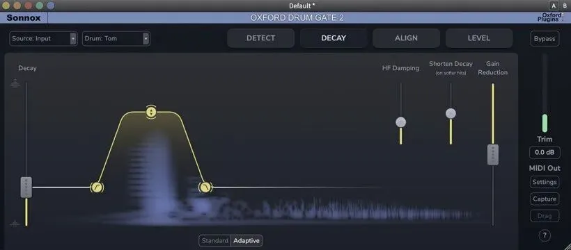 用户可以独立控制共振区域的增益衰减、衰减、高频阻尼以及高低频截止频率,从而获得比以往更自然、更灵活的音质。对于喜欢 Oxford Drum Gate 1 的用户,标准模式仍然可用,用户可以在自适应处理和熟悉的 Oxford Drum Gate 音色之间进行选择。