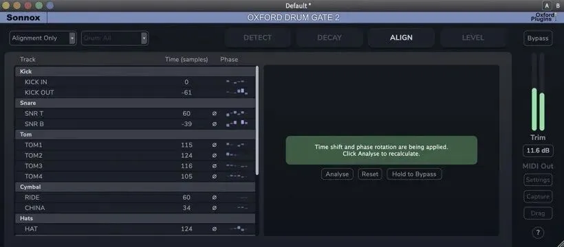 使用多个麦克风录制原声鼓组时,例如军鼓上下麦克风,或近距离麦克风与吊镲或房间麦克风的组合,相位一致性问题不可避免。虽然通用的校准工具可以提供帮助,但它们通常会为了追求相位一致性而过度调整时间,从而引入失真。